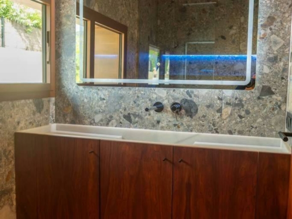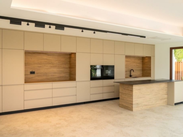 Luxe moderne villa te koop in Calpe, Costa Blanca – Op slechts 1,5 km van het strand van La Fustera Eigentijds design op een toplocatie aan de kust Deze uitzonderlijke moderne villa, nieuw gebouwd en instapklaar, ligt aan de prachtige kust van Benissa, tussen de charmante stadjes Calpe en Moraira (Costa Blanca, Alicante). Deze woning ligt op slechts 1,5 km van het strand van La Fustera, een van de meest prestigieuze Blauwe Vlag-stranden in de omgeving, en combineert architectonische elegantie, hoogwaardige materialen en geavanceerde energie-efficiëntie om de perfecte mediterrane levensstijl te bieden. Ruime indeling met luxe afwerking De villa is verdeeld over twee verdiepingen die zijn ontworpen voor maximaal comfort en functionaliteit. Op de begane grond vindt u een grote garage voor twee auto’s, een gastentoilet, een wasruimte, een spa- of recreatieruimte en een tweepersoonsslaapkamer met een en-suite badkamer en kleedkamer. Een interne trap leidt naar de bovenverdieping. De bovenverdieping beschikt over een uitnodigende hal en een moderne open keuken die volledig is uitgerust met hoogwaardige apparatuur, waaronder een dubbele koelkast met vriezer, oven, magnetron, vaatwasser en inductiekookplaat met ingebouwde afzuigkap. De lichte woon-eetkamer komt uit op het hoofdterras met zijn spectaculaire privézwembad en ligweide. Het slaapgedeelte bestaat uit drie slaapkamers, waarvan één met een en-suite badkamer, plus een gedeelde badkamer. Alle slaapkamers hebben directe toegang tot het terras bij het zwembad. Hoogwaardige voorzieningen Deze woning is voorzien van hoogwaardige materialen en energiezuinige systemen voor comfort het hele jaar door: Airconditioning met individuele thermostaten Vloerverwarming met warmtepomp Aerothermisch warmwatersysteem Voorbereiding voor alarmsysteem Aluminium ramen met thermische onderbreking en laag-emissief glas Gemotoriseerde jaloezieën in de slaapkamers Fotovoltaïsche installatie voor energiebesparing Verwarmd zwembad met automatische afdekking en ledverlichting Domotica voor verlichting en klimaatbeheersing Spa- en recreatieruimte met voorbereiding voor jacuzzi, bar en thuisbioscoop Aangelegde, onderhoudsvriendelijke tuin Toplocatie tussen Calpe en Moraira De villa ligt in een van de meest gewilde woonwijken van de Costa Blanca, dicht bij zowel de zee als de bergen. De omgeving biedt een ruime keuze aan stranden, baaien, restaurants en recreatiemogelijkheden, allemaal op korte afstand. Afstanden tot belangrijke bezienswaardigheden Strand La Fustera: 1,5 km Jachtclub Les Basetes: 2 km Calpe: 6 km Moraira: 8 km Altea Golf Club: 12 km Internationale luchthaven van Alicante: 85 km Leef de mediterrane droom Deze luxe, moderne villa in Calpe biedt een perfecte mix van stijl, comfort en locatie. Neem vandaag nog contact met ons op om een bezichtiging te regelen en uw nieuwe leven aan de Costa Blanca te ontdekken.
