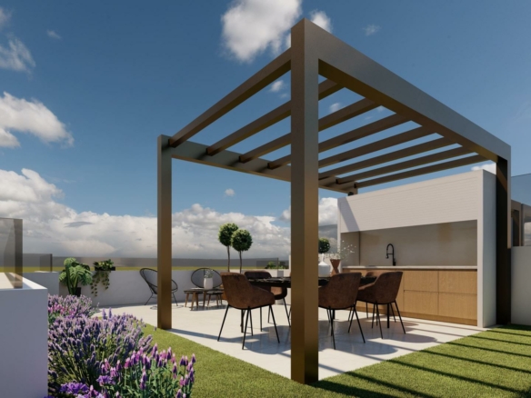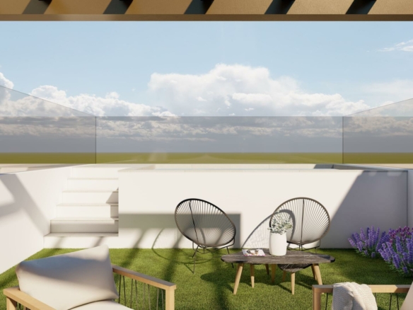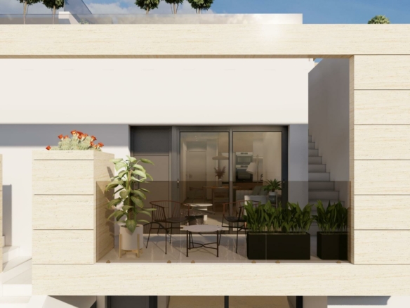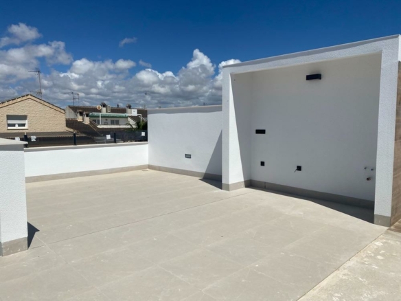 New Build Bungalows in San Pedro del Pinatar Modern Living Near the Beach Contemporary Coastal Homes in El Salero San Pedro del Pinatar Discover these stylish 12 new build bungalows located in El Salero, a charming residential area of San Pedro del Pinatar on the Costa Calida. This sought after location offers the perfect balance between coastal living and everyday convenience, with supermarkets, restaurants, cafes and essential services all within walking distance. San Pedro del Pinatar is well known for its natural mud baths, salt flats and relaxed Mediterranean lifestyle. With a welcoming community and a mild climate all year round, it is an ideal destination for both permanent living and holiday homes. Prime Location Close to the Mar Menor and Mediterranean Sea These properties are ideally located just 2 km from the beaches of Villa Nanitos on the Mar Menor and El Mojon on the Mediterranean Sea, both easily reachable within a 20 minute walk. The area is perfect for water sports enthusiasts, with nearby marinas, sailing clubs and coastal promenades. Modern Design and Functional Layouts The development offers modern bungalows with 2 bedrooms and 2 bathrooms, designed with open plan kitchens and bright living spaces that maximize natural light. Ground floor units feature spacious private terraces with the option to add a private swimming pool at an additional cost. Top floor properties include a private rooftop solarium with a swimming pool already included, providing the perfect space to relax and enjoy the Mediterranean sun. Each property also includes a private parking space. High Quality Finishes and Energy Efficiency These homes are built with high quality materials and modern specifications to ensure comfort and efficiency. Features include pre installation for ducted air conditioning, aerothermal system for hot water and electric shutters. Bathrooms come fully equipped with vanity units, mirrors, shower screens and underfloor heating. A complete LED lighting package is included both indoors and outdoors, enhancing the overall ambiance of the property. Excellent Connectivity and Nearby Amenities San Pedro del Pinatar offers excellent connections to key destinations. The Dos Mares shopping center is approximately 4 km away, while Murcia International Airport is around 35 km. Alicante Airport can be reached in approximately 75 km. Several golf courses and marinas are located within a short drive, making this an ideal location for leisure and recreation. Ideal Property for Investment or Year Round Living These new build bungalows combine modern design, a prime coastal location and high quality finishes, making them an excellent choice for investment, holiday use or permanent residence. Contact us today to receive more information or to arrange a viewing and secure your new home in San Pedro del Pinatar. 365