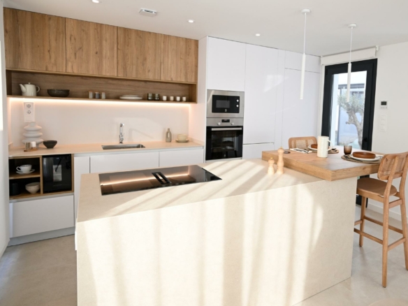 NEW BUILD ONE LEVEL VILLAS IN ALTAONA GOLF RESORT, MURCIA New Build residencial of beautiful villas in Altaona Golf resort, Murcia. Located in a privileged environment where we can live quietly, in contact with nature and the mountains, we achieve quality of life, fresh air and open spaces. One level villas build on the plots from 300 m2 with 3 bedrooms, 2 bathrooms and a private pool with multiple options where quality is our highest and where we integrate the exterior with the interior of the living place. Exclusive New Build residential located in Altaona Golf just 15 minutes by car from the center of Murcia capital and 20 minutes from the beaches you can enjoy the tranquility and security offered by the Golf Course that has 18 holes and the comfort to live close to all services. Murcias airport Corvera only 15 minutes drive away. 365