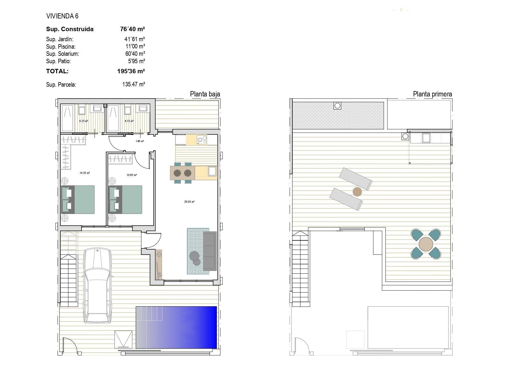 Modern properties with 2 bedrooms and 2 bathrooms, open plan kitchen with living room, fitted wardrobes, terrace, private solarium, garden with the pool and parking space.