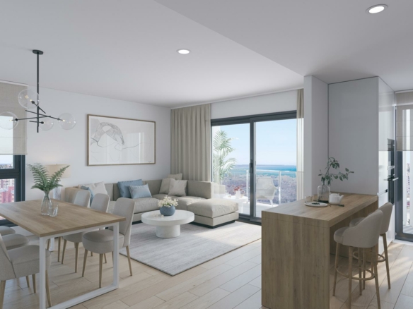 Residencial de nueva construcción en San Agustín, Alicante, con impresionantes vistas a la ciudad y al mar La casa de sus sueños en una ubicación privilegiada con vistas panorámicas Disfruta de unas bonitas vistas al mar y al castillo. Descubra su nuevo hogar en el codiciado barrio de San Agustín de Alicante, donde la vida moderna se encuentra con paisajes pintorescos. Este exclusivo complejo residencial, situado cerca de Pau II, ofrece 28 apartamentos bellamente diseñados con 2 ó 3 dormitorios. La comunidad cuenta con una piscina comunitaria, exuberantes jardines y zona infantil, e incluye una plaza de garaje y trastero para mayor comodidad. Servicios exclusivos para un estilo de vida confortable Disfrute de una serie de servicios diseñados para mejorar su calidad de vida. Siete áticos del complejo cuentan con solariums privados accesibles directamente desde los apartamentos, que ofrecen impresionantes vistas de Alicante, el mar y del emblemático Castillo de Santa Bárbara. Entre las comodidades adicionales se incluye un aparcamiento seguro para bicicletas, que facilita la adopción de un estilo de vida activo. Su nuevo hogar dispone de calefacción centralizada por aerotermia para una mayor eficiencia energética y confort durante todo el año, con aire acondicionado integrado (frío/calor) distribuido por conductos. La carpintería de PVC o aluminio de alta calidad con aislamiento térmico y acústico garantiza un entorno tranquilo y climáticamente eficiente. Convenientemente conectado con todo lo que necesitas Situada entre Gran Vía y Vía Parque, la promoción ofrece una excelente conectividad con el centro de la ciudad y las principales vías de comunicación como la autopista A7. La céntrica ubicación es ideal para familias y profesionales, con nueve instituciones educativas de todos los niveles muy cerca. Para las necesidades diarias, encontrará cerca cuatro grandes supermercados y el Centro Comercial Isla de Corfú, que ofrece gimnasios, restaurantes y una gran variedad de tiendas. Todo lo que necesita está a poca distancia, lo que le permite dejar su coche en casa. Un barrio rico en accesibilidad y belleza natural El barrio de San Agustín se asienta sobre una suave colina, ofreciendo vistas panorámicas del perfil de la ciudad, el Monte Benacantil y las montañas circundantes. El clima mediterráneo de Alicante hace que la vida al aire libre sea un placer durante todo el año, con un montón de espacios verdes y opciones de ocio cerca. Distancias clave: Centro de Alicante: 2 km Aeropuerto Alicante-Elche: 14 km Playa de San Juan: 6 km Campo de golf de Alicante: 7 km Puerto de Alicante: 5 km Experimente lo mejor de la vida alicantina El excepcional clima de Alicante, su vibrante cultura y sus excelentes infraestructuras la convierten en una de las ciudades españolas más deseadas para vivir. Esta nueva promoción residencial en San Agustín combina un diseño elegante con una ubicación inmejorable, lo que la convierte en el lugar ideal para su próxima etapa. Póngase en contacto con nosotros hoy mismo para concertar una visita y hacer suya esta casa de ensueño. 365