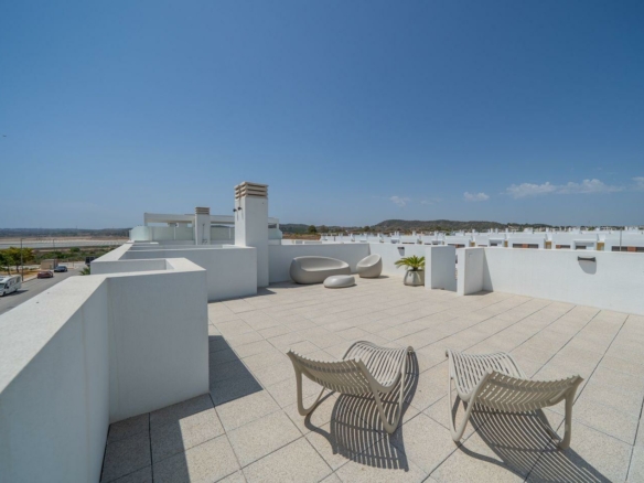 RESIDENCIAL DE OBRA NUEVA DE BUNGALOW EN VISTABELLA Residencial de obra nueva de bungalows de diseño moderno en Vistabella. Modernos bungalows de 2 y 3 dormitorios, cocina americana y salón, armarios empotrados, plaza de garaje. Los bungalows de planta baja disponen de jardín privado y los de planta alta de solarium privado. El residencial cuenta con jardines comunitarios muy bien diseñados con una preciosa piscina comunitaria. Estos preciosos y espaciosos apartamentos están siendo construidos con productos y materiales de primera calidad. En Vistabella Golf hay espacio para todos. El campo está diseñado para que cada jugador pueda disfrutarlo de principio a fin. Sus calles onduladas, bunkers estratégicos o lagos son algunas de las características que lo convierten en uno de los diseños más atractivos de la zona, donde cada golpe es un reto y un placer para los sentidos. Los 18 Hoyos de Vistabella Golf, par 72 y más de 6.000 metros de longitud han sido diseñados siguiendo las pautas de los campos modernos con 4 tees de gran amplitud en cada hoyo, calles anchas y bunkers elevados. La casa club y restaurante de Vistabella Golf y los bares y tiendas de la zona se encuentran a 5 minutos a pie. La animada ciudad de San Miguel de Salinas y Los Montesinos están a 5 minutos en coche y las hermosas playas de bandera azul en Guardamar están a sólo 15 minutos en coche. El aeropuerto de Alicante está a 35 minutos y el nuevo aeropuerto de Corvera Murcia está a 45 minutos.