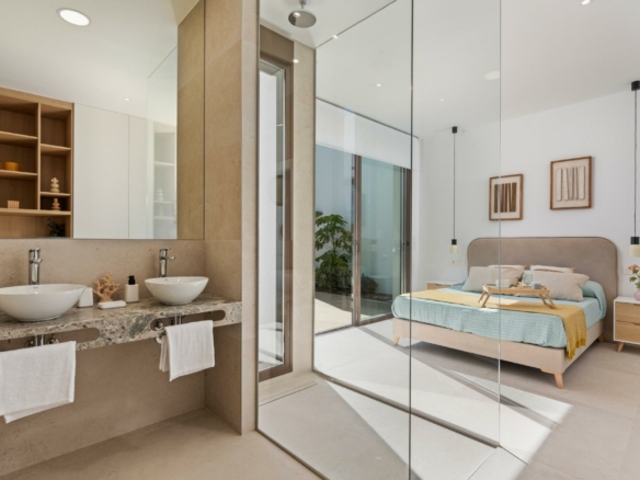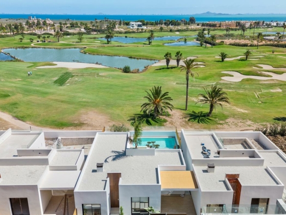 Villas y Apartamentos de Obra Nueva en Los Alcázares Descubra un nuevo complejo residencial en Los Alcázares, Murcia, con 16 modernos apartamentos y áticos de 2 y 3 dormitorios, además de 8 exclusivas villas. Esta promoción combina a la perfección diseño contemporáneo, alta calidad y funcionalidad. Su inmejorable ubicación ofrece impresionantes vistas a La Serena Golf y al Mar Menor. Lujosas villas con modernas instalaciones Las villas cuentan con 3 amplios dormitorios, 2 baños, cocina americana integrada en el salón, armarios empotrados, una gran terraza, piscina privada y plaza de aparcamiento. Algunas unidades también cuentan con un sótano, y un solarium está disponible como una opción. Ubicación privilegiada junto al campo de golf de La Serena Situado en el corazón del prestigioso campo de golf La Serena, conocido por su combinación única de lagos y exuberante vegetación, la zona residencial ofrece un estilo de vida tranquilo. El diseño estratégico del campo de golf incorpora elementos de agua en 16 de sus 18 hoyos, proporcionando una experiencia desafiante pero agradable para los golfistas. El campo se encuentra a poca distancia del centro de Los Alcázares, lo que ofrece el equilibrio perfecto entre tranquilidad y accesibilidad a los servicios locales. Puntos de interés cercanos La Serena Golf: 0 km Playa del Mar Menor: 1 km Aeropuerto de Murcia: 25 km Cartagena: 21 km Centro comercial local: 4 km Aeropuerto de Alicante: 55 km 365