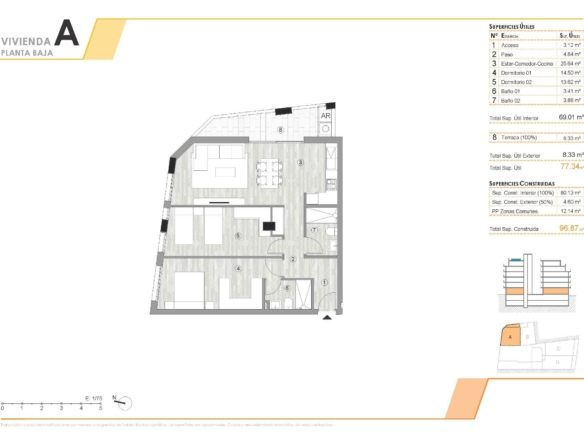 Appartements neufs au cœur de Torrevieja À seulement 400 m de Playa del Cura Emplacement privilégié dans le centre de Torrevieja Ce nouvel immeuble résidentiel bénéficie d’un emplacement imbattable dans le centre de Torrevieja, à seulement 400 m de Playa del Cura. Entouré de magasins, supermarchés, restaurants et services quotidiens, il offre tout ce dont vous avez besoin à quelques pas. Le quartier donne également accès à des parcs, des zones de loisirs et des espaces verts, créant un équilibre parfait entre commodités urbaines et moments de détente. Maisons modernes de 2 et 3 chambres Le complexe propose une sélection d’appartements de 2 et 3 chambres, y compris des penthouses, certains avec solariums privés. Chaque maison est conçue dans un style contemporain, avec des plans d’étage ouverts, de grandes terrasses et des cuisines intégrées de style américain. Les salles de bains sont entièrement équipées avec des meubles, des parois de douche et le chauffage au sol. Les cuisines comprennent des appareils électroménagers et chaque appartement est pré-équipé pour la climatisation centralisée. Un parking souterrain et des débarras sont disponibles en option. Des installations de style resort pour votre bien-être Les résidents peuvent profiter d’une gamme d’équipements exclusifs. Le rez-de-chaussée dispose d’une salle de sport entièrement équipée, idéale pour les entraînements quotidiens. Le solarium sur le toit offre une véritable oasis de détente avec des chaises longues, un sauna finlandais et une mini-piscine. L’ascenseur et les escaliers relient directement le toit pour un maximum de commodité et d’accessibilité. Vivre dans un environnement naturel et côtier unique Torrevieja est connue pour son climat méditerranéen chaud, avec une température moyenne annuelle de 20 °C, ce qui en fait un endroit parfait pour vivre toute l’année. La ville est célèbre pour ses lagunes salées naturelles et le parc naturel protégé de La Mata et Torrevieja, situé à seulement 4 km du complexe. Ses lacs roses et verts, ses sentiers de randonnée pittoresques et sa riche biodiversité offrent un mode de vie sain et inspirant. Distances par rapport aux principaux points d’intérêt Playa del Cura 0,4 km Port de Torrevieja 1 km Parc naturel de La Mata 4 km Golf de Villamartin 8 km Aéroport d’Alicante 45 km Aéroport de Murcie 60 km Découvrez le mode de vie méditerranéen Ne manquez pas l’occasion d’acquérir une maison moderne dans l’une des villes côtières les plus prisées de la Costa Blanca. Contactez-nous dès aujourd’hui pour organiser une visite et réserver votre place dans ce nouveau complexe exceptionnel.