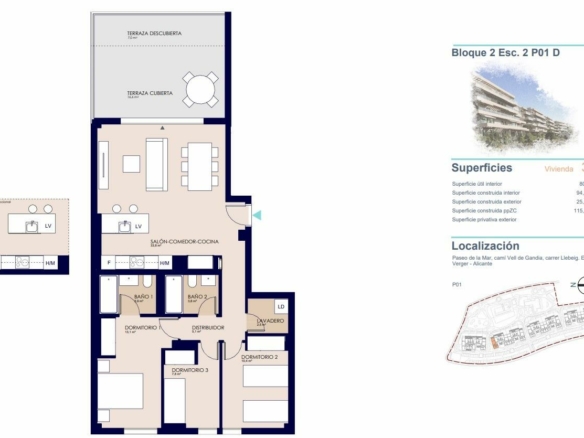 Appartements neufs modernes à El Verger – Vie côtière à seulement 500 mètres de la plage Appartements avec grandes terrasses et équipements haut de gamme Ce nouveau complexe résidentiel à El Verger propose des appartements modernes de 1, 2 et 3 chambres avec de grandes terrasses conçues pour profiter de la lumière méditerranéenne et de la vie en plein air toute l’année. Le projet comprend de vastes espaces verts paysagers, une piscine commune et un large éventail d’équipements communs pour améliorer votre qualité de vie. Chaque logement est équipé de finitions de haute qualité, notamment d’une cuisine entièrement équipée avec plaque à induction, hotte aspirante, four et micro-ondes intégrés, ainsi que d’un système de climatisation complet et du chauffage au sol dans les salles de bains. Emplacement privilégié près de Dénia et de la mer Méditerranée Situé dans un quartier paisible mais bien desservi d’El Verger, le complexe se trouve à seulement 500 mètres de la plage et à 5 minutes à pied du centre-ville, où tous les services essentiels tels que les commerces, les restaurants, les écoles et les centres de santé sont facilement accessibles. Profitez d’un environnement naturel et détendu, entouré d’espaces verts, avec un accès direct à une piste cyclable qui relie Denia le long de la pittoresque Carretera de las Marinas. Espaces communs exceptionnels et mode de vie durable Conçu pour les modes de vie actifs et sociaux, ce complexe résidentiel comprend : Piscine avec solarium Conciergerie et casiers intelligents Parking extérieur et parking à vélos avec bornes de recharge électrique Piste cyclable et piste de course à pied au sein du complexe Salle de sport et espace d’exercice en plein air Espace de coworking et gastroteca pour événements Sauna, jacuzzi et espace détente Aire de pique-nique et terrain de pétanque Distances vers les principaux points d’intérêt : Plage : 0,5 km Centre-ville de Denia : 9 km Centre commercial Portal de la Marina : 6 km Club de golf La Sella : 13 km Hôpital Marina Salud : 10 km Aéroport d’Alicante : 105 km Aéroport de Valence : 115 km Le projet intègre également des caractéristiques durables, telles que des panneaux photovoltaïques à haut rendement sur le toit pour répondre aux besoins énergétiques du bâtiment. Un mode de vie équilibré entre nature et confort El Verger est connu pour son authenticité et le charme paisible de son littoral, ce qui en fait un endroit idéal pour vivre à l’année ou passer ses vacances. Grâce à un accès rapide aux principales routes telles que la N-332 et l’autoroute AP-7, vous bénéficierez d’une excellente connectivité tout en vivant en harmonie avec la nature. Ne manquez pas cette occasion d’acquérir une nouvelle maison en bord de mer. Contactez-nous dès aujourd’hui pour obtenir plus d’informations ou pour réserver votre visite.