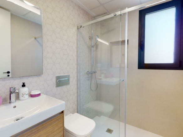 VILLAS NEUVES A SAN FULGENCIO Nouvelle construction résidentielle de 3 villas modernes à San Fulgencio. Villas construites sur des parcelles de 500 m2 et situées dans un quartier résidentiel avec tous les services à distance de marche et à courte distance du meilleur centre SPA et parc aquatique de la zone. Les villas sont construites sur 2 étages et disposent de 3 chambres à coucher, 3 salles de bains, une cuisine ouverte sur le salon, des armoires encastrées, des terrasses, un jardin privé avec la piscine et une place de parking. Possibilité de solarium privé moyennant un supplément. San Fulgencio est un village agréable avec plusieurs restaurants et magasins et la situation est très bonne avec sa proximité des plages fantastiques de La Marina et de la ville légèrement plus grande de Guardamar. La ville de San Fulgencio est située à environ 30 minutes de l’aéroport d’Alicante-Elche, à 6 km du terrain de golf le plus proche et à seulement 7 km de la plage la plus proche.