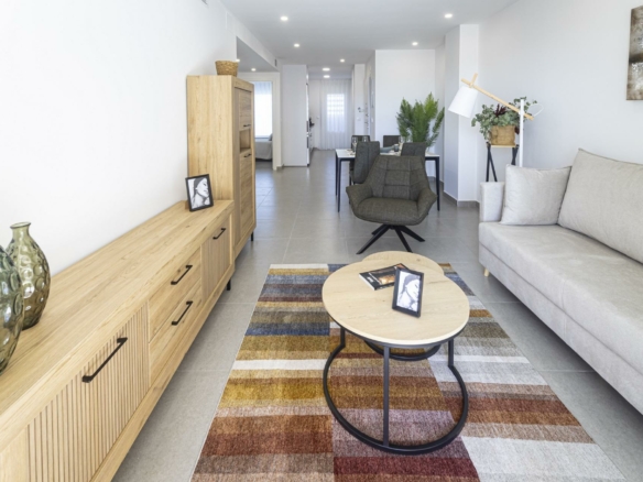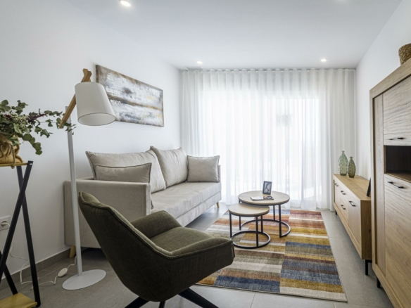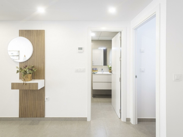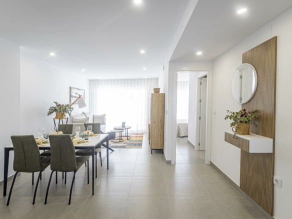 MOOIE APPARTEMENTEN MET ZEEZICHT IN LA MANGA Deze urbanisatie is gelegen in het grootste uitbreidingsgebied van La Manga. In deze nieuwe urbanisatie zijn de huizen ontworpen om te profiteren van elke hoek van het huis, evenals de zorg bij het kiezen van de materialen en hun ontwerp. Appartementen met gepantserde toegangsdeur en deuren in wit gelakt met roestvrijstalen beslag. Wit, monobloc jaloezieën en dubbele beglazing met luchtkamer. In de hoofdslaapkamer ingebouwde kleerkast met schuifdeuren, met een scheidingsplank in de vide, een bar en een commode met drie lades. Keuken met hoge en lage meubels, in wit, gola-achtige handgreep, enkele spoelbak met afdruiprek, keramische kookplaat, elektrische oven en afzuigkap. Pre-installatie van airconditioning (koude en warmte) via leidingen met bepaling van zonering van kamers. La Manga del Mar Menor is een natuurlijke strook land omringd door twee zeeën, de Mar Menor en de Middellandse Zee. Aan deze zeldzaamheid kunt u de meerdere vrijetijds- en vrijetijdsopties, restaurants, supermarkten, medische centra, apotheken, watersportcentra, golfbanen toevoegen. La Manga ligt aan de noordkust van de Costa Calida en is een populaire vakantiebestemming voor toeristen. De smalle landstrook die de warme lagune en de koudere zee scheidt, heeft een uniek microklimaat. Het is een van de meest exotische gebieden van Spanje. De luchthaven van Corvera ligt op ongeveer 1 uur rijden en de luchthaven van Alicante op ongeveer 2 uur rijden.