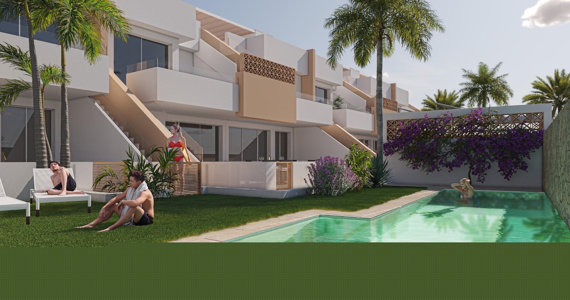 Nieuwbouw Bungalows in Pilar de la Horadada dichtbij het strand en het stadscentrum Eigentijds wonen in het hart van de Costa Blanca Welkom in een boetiekcomplex van 12 nieuw gebouwde bungalows in Pilar de la Horadada, een levendige kustplaats in het zuidelijke puntje van de Costa Blanca. Deze toplocatie biedt de perfecte mix van rustig mediterraan wonen en gemak, met alle essentiële diensten, winkels, restaurants en voorzieningen op loopafstand. De prachtige zandstranden van Torre de la Horadada en Mil Palmeras liggen op slechts 3 km afstand, ideaal voor ontspannen stranddagen of watersporten. Keuze uit bungalows op de begane grond of op de bovenste verdieping Dit exclusieve project biedt twee soorten moderne woningen die bij je levensstijl passen: Bungalows op de begane grond met 3 slaapkamers, 2 badkamers en grote privéterrassen aan de voor- en achterkant met directe toegang tot het gemeenschappelijke zwembad en de tuinen. Bungalows op de bovenste verdieping met 2 slaapkamers, 2 badkamers en een groot privédakterras, compleet met zomerkeuken, pergola en gastentoilet. Alle woningen hebben een lichte open woonruimte, een volledig uitgeruste keuken, airconditioning en een eigen parkeerplaats. De slaapkamers hebben ingebouwde kasten en de badkamers zijn voorzien van vloerverwarming voor extra comfort. Hoogwaardige kenmerken voor modern mediterraan wonen De woningen zijn ontworpen met hoogwaardige afwerkingen en praktische functies, waaronder: Gepantserde voordeur met aluminium afwerking Elektrische rolluiken in woonkamer en slaapkamers Aerothermisch warmwatersysteem Keukenapparatuur van BALAY of gelijkwaardig Solariums op het dak met kunstgras, buitendouche, verlichting en volledige zomerkeuken met vaatwasser, kleine koelkast, inductiekookplaat en afzuigkap. Strategische ligging met uitstekende verbindingen Pilar de la Horadada is goed verbonden met de belangrijkste bezienswaardigheden langs de Costa Blanca en Costa Cálida: Stranden (Torre de la Horadada / Mil Palmeras) – 3 km Golfbaan Lo Romero – 6 km Luchthaven Corvera (Murcia) – 40 km Luchthaven Alicante – 55 km Winkelcentrum Zenia Boulevard – 14 km Jachthaven van San Pedro del Pinatar – 11 km Jouw ideale huis in de zon Of je nu op zoek bent naar een vakantieplek, een verblijf het hele jaar door of een investering in verhuur, deze bungalows in Pilar de la Horadada bieden uitstekende waarde en kwaliteit in een van de meest gewilde steden aan de Costa Blanca. Neem vandaag nog contact met ons op voor een bezichtiging of voor meer informatie!