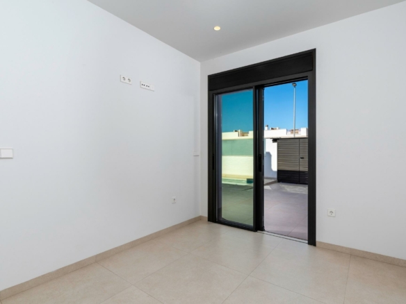 Exclusieve nieuwbouwwoningen in Pilar de la Horadada, Costa Blanca Modern mediterraan wonen vlakbij het strand Ontdek dit exclusieve nieuwe project van slechts 8 moderne woningen in Pilar de la Horadada, op loopafstand van het stadscentrum en op slechts 3,5 km van de prachtige stranden van Torre de la Horadada en Mil Palmeras. Dit charmante kustplaatsje, gelegen in het zuidelijkste deel van de Costa Blanca, staat bekend om zijn ontspannen sfeer, traditionele Spaanse charme en uitstekende voorzieningen. Bewoners genieten van een breed scala aan diensten, waaronder supermarkten, restaurants, winkels en recreatiegebieden, allemaal op slechts een paar minuten afstand. Elegante woningen ontworpen voor comfort en stijl Het project biedt een selectie van appartementen op de begane grond met terrassen aan de voorzijde en privétuinen, of appartementen op de bovenste verdieping met ruime terrassen en privésolaria. Elke woning heeft 3 slaapkamers en 2 badkamers, waarvan één ensuite, ontworpen met moderne lijnen en hoogwaardige afwerkingen voor maximaal comfort. Het wooncomplex beschikt over een gemeenschappelijk zwembad omgeven door aangelegde tuinen, waardoor een uitnodigende en rustige omgeving ontstaat voor ontspanning en vrije tijd. Elke woning beschikt ook over een eigen parkeerplaats en een berging. Hoogwaardige afwerking en premium voorzieningen Deze nieuwbouwwoningen zijn gebouwd met materialen van topkwaliteit en oog voor detail. De belangrijkste specificaties zijn: Aluminium buitenschrijnwerk in antracietgrijs met thermische onderbreking (merk CORTIZO) Viervoudige beglazing met zonwering Elektrische aluminium rolluiken in de slaapkamers Hangende toiletten en inloopdouches met geïntegreerde vloeren Badkamermeubilair met LED-verlichte spiegels en elektrische handdoekrekken Volledig ingerichte keuken met Miele-apparatuur LED-verlichting binnen en buiten in de hele woning Complete airconditioninginstallatie via kanalen (Fujitsu-systeem) Perfecte locatie aan de Costa Blanca Pilar de la Horadada is ideaal gelegen voor zowel permanent wonen als vakanties. De stad combineert het beste van het traditionele Spaanse leven met moderne infrastructuur en de nabijheid van de zee. Belangrijkste afstanden: Stranden van Torre de la Horadada en Mil Palmeras: 3,5 km Golfbaan Lo Romero: 6 km Luchthaven Murcia-Corvera: 40 km Luchthaven Alicante: 55 km Jachthaven van San Pedro del Pinatar: 10 km Uw nieuwe huis in de zon wacht op u Geniet van de perfecte combinatie van design, comfort en mediterrane levensstijl in deze nieuwbouwwoningen in Pilar de la Horadada. Of u nu op zoek bent naar een vakantiehuis of een woning om het hele jaar door te wonen, dit exclusieve project biedt de ideale balans tussen kwaliteit, locatie en modern wonen. Neem vandaag nog contact met ons op voor meer informatie of om een bezichtiging te regelen.