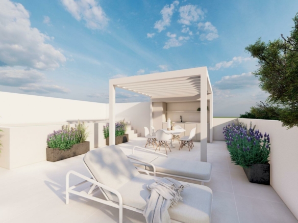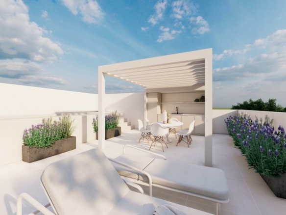 Exclusieve nieuwbouwwoningen met privézwembad in Pilar de la Horadada Modern wonen op een toplocatie aan de Costa Blanca Ontdek een exclusief nieuwbouwproject van slechts twee premium bungalows in het hart van Pilar de la Horadada, een charmant kustplaatsje aan de Costa Blanca dat bekend staat om zijn fijne zandstranden, rustige sfeer en mediterrane levensstijl. Het wooncomplex ligt op slechts 2,5 km van het strand en op loopafstand van supermarkten, winkels, restaurants en essentiële dagelijkse voorzieningen. Met uitstekende wegverbindingen en de luchthaven van Alicante op slechts 45 km afstand, biedt deze locatie de perfecte balans tussen rust, comfort en bereikbaarheid. Twee unieke woningen ontworpen voor comfort Het project omvat twee elegante woningen met 2 slaapkamers en 2 badkamers, ontworpen met hoogwaardige afwerkingen en moderne indelingen. Een van de badkamers is ensuite, wat extra privacy en gemak biedt. Elke woning biedt zijn eigen onderscheidende buitenbeleving, afgestemd op verschillende levensstijlvoorkeuren. Bungalow op de begane grond met ruime tuin en privézwembad De woning op de begane grond heeft een royale tuin van 75 m2, ideaal om buiten te eten, te zonnen en te ontspannen. Er is een privézwembad en een eigen parkeerplaats op het perceel. Grote ramen en open ruimtes zorgen voor een lichte en uitnodigende sfeer in het hele huis. Penthouse-bungalow met privésolarium en zwembad De woning op de bovenste verdieping heeft een omheinde parkeerplaats op de begane grond en is toegankelijk via een buitentrap. Het beschikt over een ruim terras en een privésolarium op het dak met een eigen zwembad, waardoor het een exclusief toevluchtsoord is om te genieten van het mediterrane klimaat en het weidse uitzicht. Levensstijl in Pilar de la Horadada Deze kustgemeente staat bekend om zijn rustige en ontspannen sfeer, prachtige stranden zoals Mil Palmeras en een breed scala aan buitenactiviteiten. Snorkelen, duiken, kustwandelingen en fietsen maken deel uit van de dagelijkse levensstijl van zowel bewoners als bezoekers. Natuurliefhebbers zullen de nabijheid van de zoutmeren van San Pedro, op ongeveer 12 km afstand, met hun schilderachtige landschappen en wilde dieren zeker waarderen. Afstanden tot belangrijke bezienswaardigheden Strand: 2,5 km Zoutmeren van San Pedro: 12 km Lo Romero Golf: 6 km Luchthaven Alicante: 45 km Luchthaven Murcia: 40 km Torrevieja: 20 km Verzeker u vandaag nog van uw exclusieve woning Grijp deze kans om een unieke woning met uitzonderlijke buitenruimtes te bezitten in een van de meest gewilde gebieden van de Costa Blanca. Neem vandaag nog contact met ons op om een bezichtiging te regelen en uw nieuwe woning in Pilar de la Horadada te reserveren. 365
