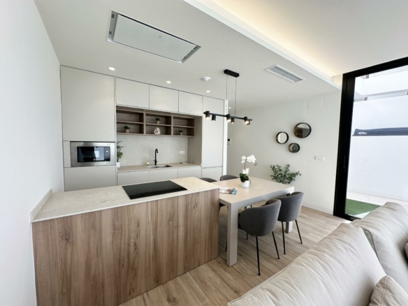 Exclusieve nieuwbouwwoningen op 300 m van het strand in Torre de la Horadada Luxe wonen aan de kust op een toplocatie Ontdek dit exclusieve nieuwbouwproject in Torre de la Horadada, een van de meest gewilde kustplaatsen in het zuiden van Alicante. Deze villa’s liggen op slechts 300 m van de Middellandse Zee en op loopafstand van winkels, restaurants en dagelijkse voorzieningen. Ze bieden een uitzonderlijke kans om te genieten van de levensstijl van de Costa Blanca. Torre de la Horadada staat bekend om zijn ontspannen sfeer, prachtige boulevard en fijne zandstranden, waardoor het ideaal is voor zowel permanent wonen als vakantiegebruik. Laatste sleutelklare villa volledig uitgerust Dit boetiekproject bestaat uit slechts vier onafhankelijke villa’s, waarvan de laatste unit sleutelklaar en volledig gemeubileerd beschikbaar is. De villa wordt compleet met meubilair, apparatuur en airconditioning geleverd, zodat u direct kunt intrekken en kunt genieten van uw nieuwe huis aan zee. De villa ligt op een privéterrein van ongeveer 207 m2 en biedt ongeveer 130 m2 aan bebouwde ruimte, verdeeld over de begane grond, de eerste verdieping en een privé-dakterras. Modern ontwerp met privézwembad en solarium De villa heeft een eigentijds ontwerp met open en lichte ruimtes. Binnen vindt u drie ruime slaapkamers en drie badkamers, een woon-eetkamer met een open keuken en directe toegang tot de tuin en het privézwembad. Het dakterras is een ideale plek om te ontspannen, te zonnen of te genieten van het uitzicht, waardoor het het hele jaar door een perfecte buitenruimte is. Hoogwaardige specificaties en comfort De woning is gebouwd volgens hoge normen en beschikt over een versterkte voordeur, gemotoriseerde rolluiken in de slaapkamers, een privézwembad en een basisdomoticasysteem voor elektronische bediening. Er is een volledig geïnstalleerd airconditioningsysteem, dat in alle seizoenen voor comfort zorgt. Een eigen parkeerplaats op het perceel zorgt voor extra gemak en veiligheid. Torre de la Horadada en omgeving Torre de la Horadada biedt een charmante kustomgeving met een lange boulevard, jachthavens en een breed scala aan restaurants, bars en lokale winkels. De nabijgelegen stranden van Torre de la Horadada en Mil Palmeras behoren tot de beste in de omgeving en zijn ideaal om te zwemmen, watersporten, snorkelen en duiken. Het gebied is goed bereikbaar en omgeven door golfbanen, winkelcentra en recreatiemogelijkheden. Afstanden tot belangrijke bezienswaardigheden Strand: 0,3 km Winkelgebied Plaza Nueva: 0,2 km Lo Romero Golf: 7 km Jachthaven van Torre de la Horadada: 1,5 km Luchthaven Murcia Corvera: 45 km Luchthaven Alicante: 50 km Uw nieuwe huis aan de Middellandse Zee wacht op u Deze instapklare villa in Torre de la Horadada is een unieke kans om een moderne woning te bezitten op slechts een steenworp afstand van het strand. Neem vandaag nog contact met ons op om een bezichtiging te regelen en deze uitzonderlijke nieuwbouwwoning aan de Costa Blanca te bemachtigen.