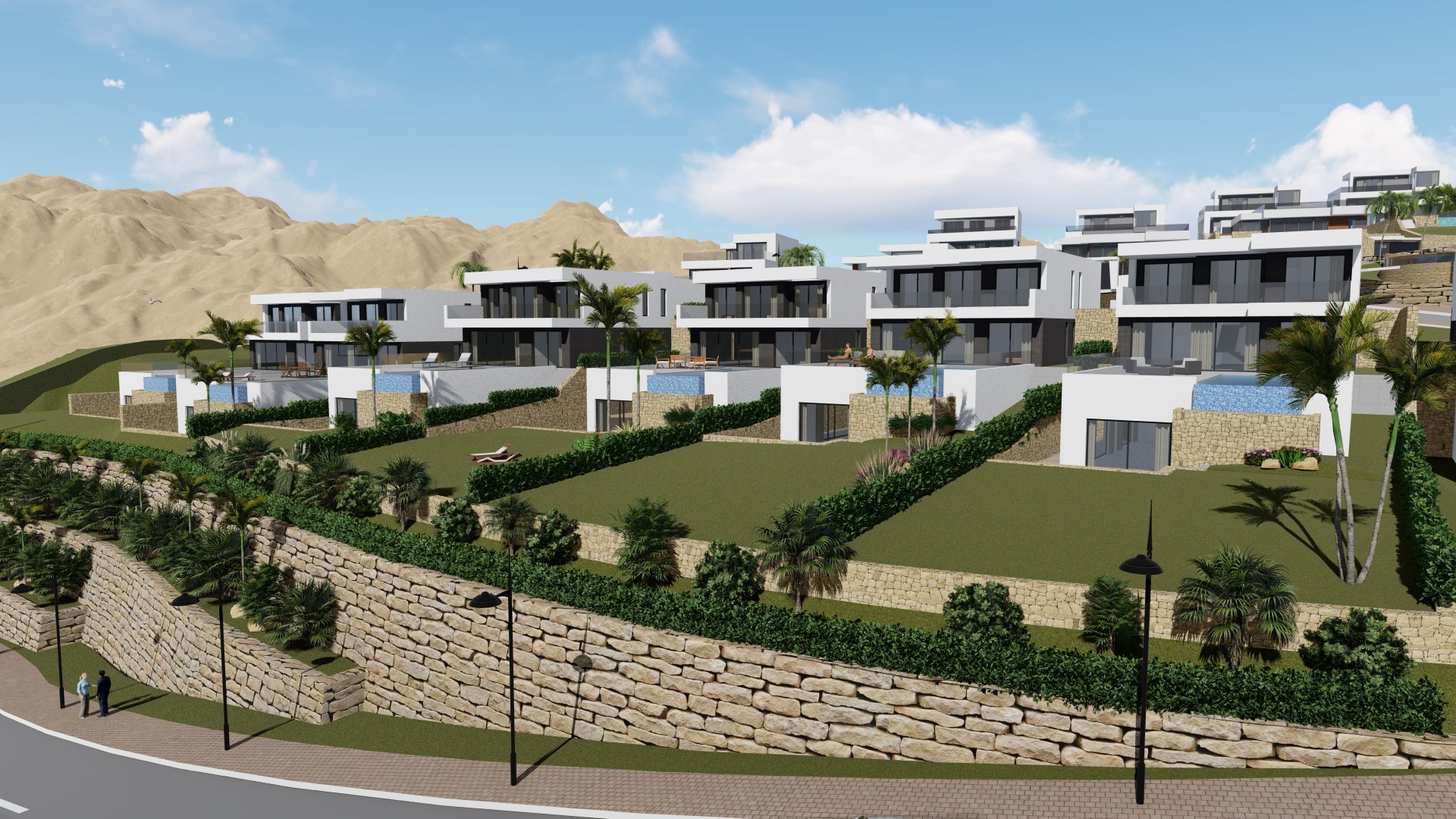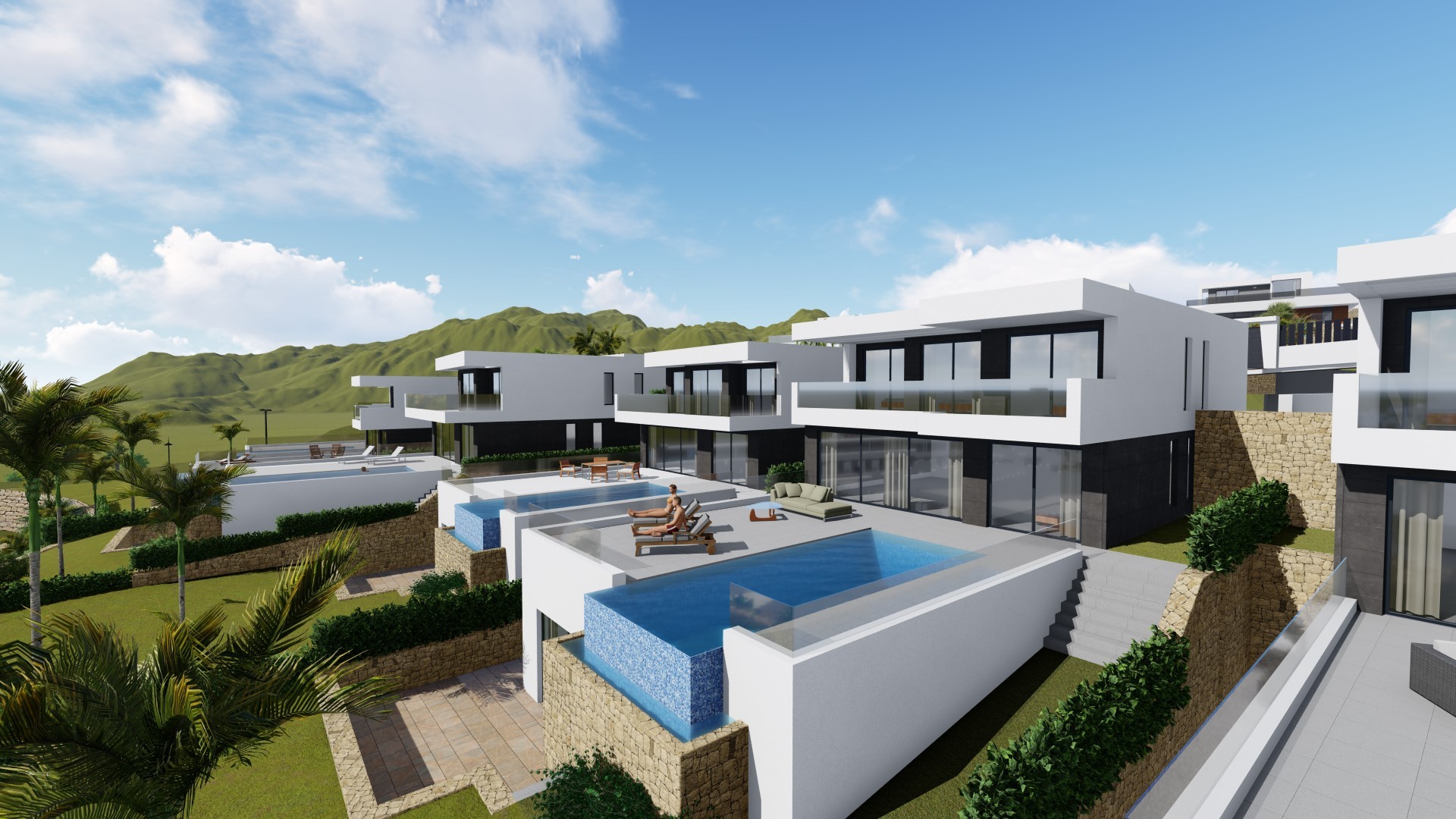 Deze zeer ruim opgevatte villa’s hebben 4 slaapkamers met een privé zwembad inclusief en hebben een totaal bebouwde oppervlakte van 300m2
