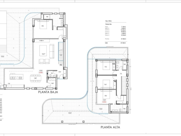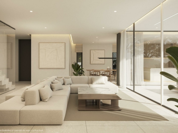 Luxe modern huis in het hart van Moraira-Teulada: een eigentijds mediterraan toevluchtsoord Ontdek een prachtige eengezinswoning genesteld in het pittoreske stadje Moraira-Teulada, Costa Blanca. Deze moderne woning biedt een uitstekende combinatie van luxe, comfort en natuurlijke schoonheid, gelegen op een royaal perceel dat zowel privacy als een panoramisch uitzicht op het omliggende mediterrane landschap biedt. Moraira-Teulada staat bekend om zijn charmante kustsfeer, levendige plaatselijke cultuur en gemakkelijke toegang tot de belangrijkste voorzieningen. Architectonische uitmuntendheid met panoramisch uitzicht Dit architectonisch ontworpen huis is een modern meesterwerk dat harmonieus opgaat in de natuurlijke omgeving. De woning is gebouwd van gewapend beton en wordt geaccentueerd door houten details. Het ontwerp integreert naadloos grote glazen panelen om het natuurlijke licht te maximaliseren en het adembenemende uitzicht op de zee en het weelderige groen te omlijsten. Het huis is gebouwd op verschillende terrassen die de natuurlijke helling van het land aanvullen en vanuit elke hoek een onbelemmerd uitzicht bieden. Ruime indeling voor elegant wonen De begane grond is het hart van dit huis, met een ruime open woonkamer van 36 m² die aansluit op een groot buitenterras van 81 m². De hoogwaardige keuken en eethoek van 20 m² zijn uitgerust met de modernste apparatuur, waardoor het ideaal is voor zowel het dagelijks leven als voor entertainment. Op de bovenverdieping biedt de master suite volledige privacy met een inloopkast, een eigen badkamer en toegang tot een privéterras. Drie extra slaapkamers, elk met hun eigen en-suite badkamers en terrassen, bieden luxe comfort voor familieleden of gasten. Uitzonderlijk buitenleven en oneindig zwembad De buitenruimtes zijn ontworpen voor ontspanning en entertainment, waaronder een groot terras van 81 m² dat ideaal is om buiten te dineren of te loungen in de mediterrane zon. Het terras leidt naar een prachtig overloopzwembad dat opgaat in de horizon en een oase van rust creëert. De zorgvuldig aangelegde tuin, vol met inheemse planten en bomen, versterkt de serene sfeer van het huis en biedt extra privacy. Duurzame en energiezuinige voorzieningen Deze woning is uitgerust met duurzame voorzieningen, waaronder een geavanceerde lucht/water-warmtepomp, vloerverwarming en airconditioning via buizen. Hoogwaardige ramen en isolatie zorgen voor energie-efficiëntie en comfort het hele jaar door. Toplocatie in de buurt van belangrijke voorzieningen Luchthaven Alicante: 90 km La Sella golfbaan: 15 km Haven van Moraira: 2 km Winkelcentra: 5 km Ervaar moderne luxe en rust in dit uitzonderlijke huis, perfect gelegen in de gewilde regio Moraira-Teulada.