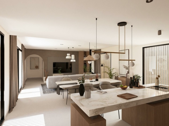Moderne gelijkvloerse villa’s in Altaona Golf Resort Murcia Toplocatie in golfresort nabij Murcia Ontdek deze exclusieve collectie nieuwbouwwoningen in het prestigieuze Altaona Golf Resort in Murcia. Deze woonwijk ligt in een veilige en rustige omgeving, omgeven door natuur en een 18-holes golfbaan, en biedt de perfecte balans tussen rust en bereikbaarheid. Altaona Golf ligt op slechts 15 km van het centrum van Murcia, waar u winkelcentra, restaurants, scholen en medische voorzieningen vindt, terwijl de stranden van de Costa Calida op slechts 20 km afstand liggen. De luchthaven Murcia Corvera ligt op een gunstige locatie op 15 km van het resort, waardoor dit een ideale locatie is voor zowel permanente woningen als vakantiehuizen. Modern ontwerp met ƩƩn verdieping, privĆ©tuin en zwembad Deze elegante villa’s zijn ontworpen op ƩƩn niveau voor maximaal comfort en functionaliteit. Kopers kunnen kiezen tussen 2, 3 of 4 slaapkamers en 2 of 3 badkamers plus een gastentoilet. Elke woning beschikt over een open keuken en woonkamer die naadloos aansluit op het buitenterras en de privĆ©tuin met zwembad. Een eigen parkeerplaats is inbegrepen in het perceel, wat zorgt voor gemak en privacy. Energiezuinige woningen met hoogwaardige voorzieningen Alle villa’s hebben een energiecertificaat met klasse A, wat een uitstekende energie-efficiĆ«ntie en lage gebruikskosten garandeert. De woningen zijn voorzien van airconditioning met warmtepomp in het hele huis, behalve in de badkamers, en elektrische vloerverwarming in de woonkamer en badkamers met onafhankelijke thermostaten per zone. Een mechanisch ventilatiesysteem ververst de lucht in keukens, badkamers, wasruimte en gastentoilet, wat het comfort binnenshuis verbetert. De keuken is uitgerust met een afzuigkap en een elektrische inductiekookplaat. LED-verlichting is aanwezig in de woonkamer, de hal en de buitenruimtes, terwijl de overige kamers zijn voorbereid zodat de eigenaar de verlichting naar eigen wens kan aanpassen. De slaapkamers zijn voorzien van USB-oplaadpunten voor extra gemak. Slimme huistechnologie en veilige gemeenschap Elke villa is voorzien van een video-intercomsysteem, slimme huisautomatisering met twee intelligente schakelaars en gemotoriseerde toegang tot de omheinde gemeenschap. De privĆ©tuin wordt aangelegd met een druppelirrigatiesysteem en een uitnodigend privĆ©zwembad, ideaal om het hele jaar door van het mediterrane klimaat te genieten. Afstanden tot belangrijke bezienswaardigheden Golfbaan Altaona 0,1 km Centrum van Murcia 15 km Stranden van Los Alcazares en Mar Menor 20 km Luchthaven Murcia Corvera 15 km Winkelcentra en diensten 10 km Hacienda Riquelme Golf Resort 12 km Uw nieuwe levensstijl in Altaona Golf wacht op u Geniet van golf, natuur, veiligheid en modern comfort in een van de meest aantrekkelijke resorts in de regio Murcia. Neem vandaag nog contact met ons op voor meer informatie of om een bezichtiging van deze prachtige nieuwbouwwoningen te regelen. 365