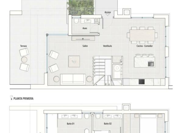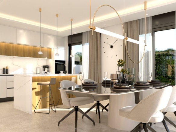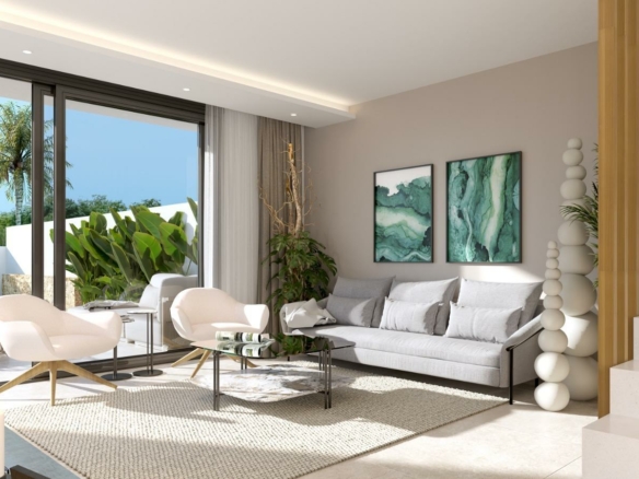 Moderne halfvrijstaande villa’s met privézwembad in Las Filipinas-Orihuela Costa Exclusieve nieuwbouwwilla’s op een toplocatie aan de Costa Blanca Ontdek dit kleinschalige project van acht moderne halfvrijstaande villa’s in Las Filipinas, Orihuela Costa, een van de meest gewilde woonwijken aan de zuidelijke Costa Blanca. Deze gevestigde wijk biedt uitstekende toegang tot dagelijkse voorzieningen, waaronder supermarkten, restaurants, apotheken en recreatiefaciliteiten, allemaal op korte afstand. Ideaal gelegen tussen enkele van de beste golfbanen in de omgeving, waaronder Villamartin Golf, Campoamor Golf, Las Ramblas Golf en Las Colinas Golf, bieden deze villa’s een uitzonderlijke levensstijl voor golfliefhebbers en internationale kopers. De prachtige stranden van Orihuela Costa liggen op slechts 6 km afstand, waardoor dit een ideale locatie is voor zowel permanente bewoning als vakantiehuizen. Eigentijds ontwerp met ruime indelingen Elke villa is gebouwd op een privéterrein van ongeveer 300 m² en biedt circa 140 m² moderne woonruimte, verdeeld over twee verdiepingen. De woningen beschikken over drie tweepersoonsslaapkamers, twee complete badkamers met dubbele wastafels, waaronder een en suite, en een extra gastentoilet. De begane grond beschikt over een lichte en stijlvolle woonkamer met een accentmuur afgewerkt met natuursteen, wat een warme en elegante sfeer creëert. Grote ramen bieden directe toegang tot het buitenterras en het privézwembad, dat is voorzien van decoratieve waterpartijen. Aan de achterzijde van de woning komt een designkeuken in Italiaanse stijl met een centraal eiland en ledverlichting uit op een ruime eethoek met toegang tot de tuin en de privé-parkeerplaats. Elegante slaapkamers en buitenleven De eerste verdieping omvat twee gastenslaapkamers met inbouwkasten en een gezinsbadkamer. De hoofdslaapkamer valt op door een verfijnd ontwerp, met een eikenhouten hoofdeinde van vloer tot plafond, spiegelende details en een luxe en-suite badkamer, evenals uitzicht over het zwembad. Er is ook de mogelijkheid om een dakterras of een semi-kelder toe te voegen, wat extra ruimte en aanpassingsmogelijkheden biedt. Hoogwaardige voorzieningen en modern comfort Deze villa’s zijn gebouwd met hoogwaardige materialen en de nieuwste technologie om comfort en efficiëntie te garanderen. Voorzieningen omvatten voorinstallatie voor kanaalairconditioning, een aerothermisch systeem voor warm water, vloerverwarming in de badkamers en elektrische rolluiken. Bijkomende specificaties zijn onder meer een alarmsysteem, video-intercom en een automatische toegangspoort voor voertuigen, wat zowel gemak als veiligheid garandeert. Toplocatie dicht bij stranden en golfbanen Las Filipinas biedt een strategische locatie met uitstekende verbindingen. De stranden van Orihuela Costa liggen op ongeveer 6 km afstand, terwijl de internationale luchthaven van Murcia 50 km en de luchthaven van Alicante 55 km verderop liggen. Verschillende topgolfbanen bevinden zich binnen een straal van 2 tot 5 km. Ideale investeringskans aan de Costa Blanca Deze moderne villa’s bieden een perfecte combinatie van design, locatie en levensstijl, waardoor ze een uitstekende investering of tweede woning aan de Costa Blanca vormen. Neem vandaag nog contact met ons op voor meer informatie of om een bezichtiging te regelen en uw nieuwe villa in Orihuela Costa te bemachtigen. 365