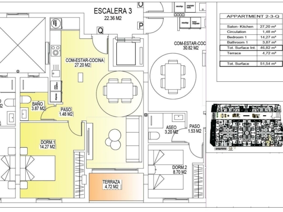 Moderne nieuwbouwappartementen in het centrum van San Miguel de Salinas Eigentijds wonen in een gezonde mediterrane omgeving Deze nieuwe woonwijk ligt in het charmante stadje San Miguel de Salinas, op slechts 10 km van de Middellandse Zee, en biedt de perfecte balans tussen modern comfort en een natuurlijke omgeving. Het gebied staat bekend om zijn nabijgelegen zoutmeren en uitzonderlijke microklimaat, dat als een van de gezondste van Europa wordt beschouwd. In dit rustige maar levendige stadje kunnen bewoners genieten van de authentieke mediterrane levensstijl, terwijl winkels, restaurants, supermarkten en alle essentiële voorzieningen op loopafstand liggen. San Miguel de Salinas ligt iets landinwaarts aan de Costa Blanca Zuid en biedt een weids uitzicht, frisse lucht en gemakkelijke toegang tot stranden, golfbanen en winkelgebieden. Stijlvolle appartementen ontworpen voor comfort en efficiëntie Het project bestaat uit twee moderne gebouwen, gescheiden door een aangelegde gemeenschappelijke tuin. Er zijn in totaal 56 moderne appartementen beschikbaar met 1, 2 of 3 slaapkamers, elk met een eigen terras. Elke woning is ontworpen met het oog op comfort, esthetiek en energie-efficiëntie, waarbij gebruik is gemaakt van hoogwaardige materialen en moderne isolatiesystemen. Elk appartement is voorzien van: Gepantserde toegangsdeur Badkamers met wastafels Voorbereiding voor airconditioning Energiecertificaat klasse A De indeling en oriëntatie van de woningen zorgen voor natuurlijk licht gedurende de hele dag, waardoor er een licht en uitnodigend interieur ontstaat dat ideaal is voor zowel permanent wonen als vakantiegebruik. Uitzonderlijke gemeenschappelijke ruimtes voor ontspanning en sociaal leven De gemeenschappelijke ruimte op de begane grond is ontworpen als het sociale hart van het project, omgeven door aangelegde tuinen, zitjes, fietsenstallingen en een kinderspeelplaats. Het is een ideale ontmoetingsplaats voor bewoners van alle leeftijden. Op het dak wacht een indrukwekkende recreatieruimte van 350 m2. Deze ruimte omvat een zwembad van 70 m2 met een apart kinderbad, pergola’s, ligstoelen en schaduwrijke plekken, waar bewoners kunnen ontspannen terwijl ze genieten van een panoramisch uitzicht. Het dak is gemakkelijk bereikbaar met een van de drie liften en is voorzien van sanitaire voorzieningen voor extra comfort. Uitstekende locatie dicht bij belangrijke bezienswaardigheden Mediterrane stranden 10 km Winkelcentrum Zenia Boulevard 9 km Villamartin Golf 6 km Las Colinas Golf 8 km Jachthaven van Torrevieja 12 km Luchthaven van Alicante 60 km Luchthaven Murcia Corvera 55 km Een slimme investering aan de zuidkust van de Costa Blanca Dit wooncomplex combineert moderne architectuur, hoogwaardige afwerking en een uitstekende centrale ligging, waardoor het een uitstekende keuze is om te wonen, van uw vakantie te genieten of te verhuren. Neem vandaag nog contact met ons op voor meer informatie of om een bezichtiging te regelen van deze moderne appartementen in San Miguel de Salinas. 365