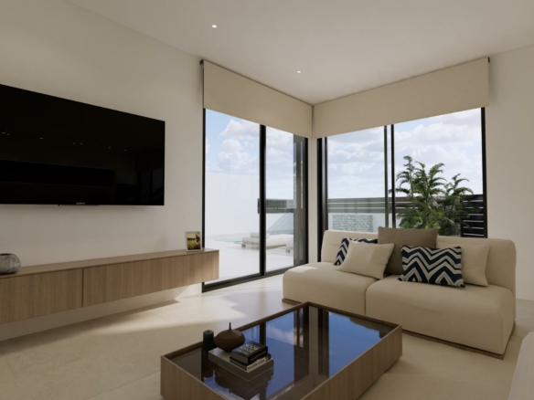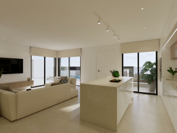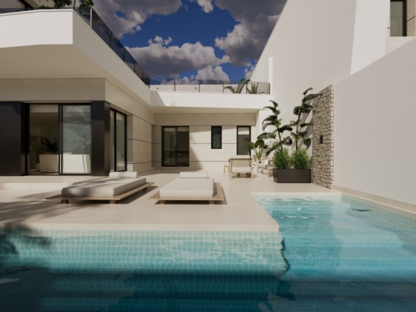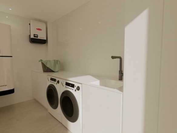 Moderne nieuwbouwwoningen in Dolores, Alicante Eigentijds wonen in het hart van de Vega Baja Ontdek dit exclusieve nieuwbouwproject in Dolores, een charmant stadje in de regio Vega Baja del Segura, ten zuiden van Alicante. Dolores staat bekend om zijn traditionele Spaanse karakter en wordt omgeven door een weelderig landschap. Het biedt een rustige levensstijl en alle dagelijkse voorzieningen op loopafstand, zoals winkels, restaurants, scholen en lokale diensten. Deze woonwijk ligt op slechts 12 km van de stranden van La Marina en Guardamar del Segura en biedt gemakkelijke toegang tot de snelweg AP-7, waardoor het perfect verbonden is met de belangrijkste kustplaatsen van de Costa Blanca. Elegante moderne villa’s met privézwembad Deze moderne villa’s met twee verdiepingen zijn ontworpen met het oog op comfort, functionaliteit en stijl. Op de begane grond vindt u een lichte open keuken die in verbinding staat met de woon-eetkamer, met grote schuifdeuren die direct uitkomen op het terras en de privétuin met zwembad. De begane grond beschikt ook over een slaapkamer met een eigen badkamer, een gastentoilet en een handige wasruimte buiten. Op de eerste verdieping zijn er twee extra slaapkamers, een badkamer en toegang tot een groot open terras van 60 m2, perfect om te zonnebaden of te ontspannen terwijl u geniet van het mediterrane klimaat. Elke woning heeft een eigen parkeerplaats op het perceel. Hoogwaardige afwerking en modern comfort Deze villa’s zijn gebouwd met hoogwaardige materialen en een eigentijds ontwerp en zijn volledig uitgerust om het hele jaar door te wonen. De belangrijkste kenmerken zijn: Buitenbetimmering met thermische onderbreking Gemotoriseerde zonwering Warmwatersysteem op basis van aerothermische energie Volledig geïnstalleerde airconditioning met luchtkanalen Privézwembad Privé parkeerplaats en aangelegde tuin Het interieur combineert elegantie en functionaliteit, maximaliseert het natuurlijke licht en biedt een uitzonderlijke leefomgeving met een sterke verbinding tussen binnen- en buitenruimtes. Toplocatie dicht bij alles Dolores ligt op een strategische locatie en biedt een evenwicht tussen rust en bereikbaarheid. Belangrijkste afstanden: Stranden van La Marina en Guardamar del Segura: 12 km Luchthaven Alicante (Elche-El Altet): 30 km (25 minuten met de auto) Luchthaven Murcia-Corvera: 70 km (1 uur met de auto) Golfbanen: 15 km De stad Alicante: 40 km Leef de mediterrane levensstijl in Dolores Deze nieuwbouwwoningen in Dolores bieden de perfecte combinatie van modern design, comfort en nabijheid tot de kust. Ze zijn ideaal voor zowel permanente bewoning als vakantieverblijf en bieden een serene mediterrane levensstijl, omgeven door natuur en gemak. Neem vandaag nog contact met ons op om een bezichtiging te regelen en uw droomhuis in Dolores werkelijkheid te laten worden.