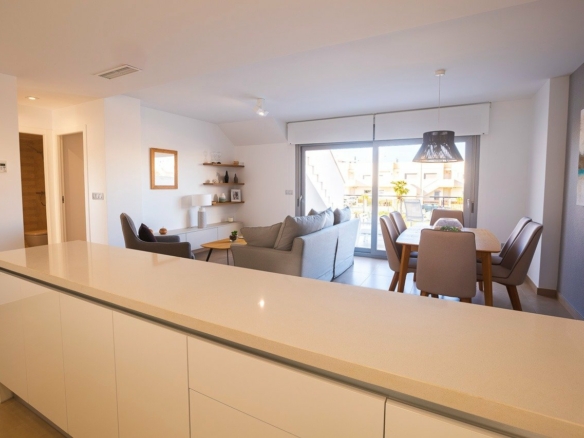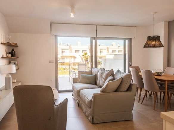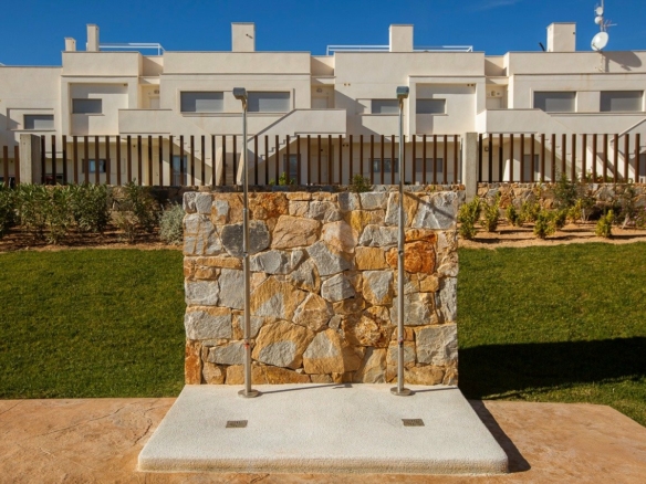 NIEUWBOUW COMPLEX VAN BUNGALOW APPARTEMENTEN IN VISTABELLA Nieuwbouw residentieel complex van bungalow appartementen in Vistabella in de buurt van de golfbaan. Complex met gemeenschappelijke voorzieningen en zwembad bestaat uit 2 en 3 slaapkamers bungalows, op de begane grond met eigen tuin en bovenste verdieping met prive solarium, open keuken met de woonkamer, inbouwkasten, terras. Elk appartement heeft een eigen parkeerplaats. Een opties berging tegen een meerprijs. Op Vistabella Golf is er plaats voor iedereen. De baan is zo ontworpen dat iedere speler er van begin tot eind van kan genieten. De golvende straten, strategische bunkers of meren zijn enkele van de kenmerken die het tot een van de meest aantrekkelijke ontwerpen in de omgeving maken, waar elke slag een uitdaging en een genot voor de zintuigen is. De 18 holes van Vistabella Golf, par 72 en meer dan 6.000 meter lang, zijn ontworpen volgens de richtlijnen van de moderne velden met 4 tees van grote amplitude in elke hole, brede fairways en verhoogde bunkers. Het clubhuis & restaurant van Vistabella Golf en de plaatselijke bars en winkels liggen op 5 minuten loopafstand. De drukke stad San Miguel de Salinas & Los Montesinos liggen op 5 minuten rijden & de mooie Blauwe vlag stranden van Guardamar liggen op slechts 15 minuten rijden. De luchthaven van Alicante ligt op 35 minuten afstand en de nieuwe luchthaven van Corvera Murcia ligt op 45 minuten afstand.