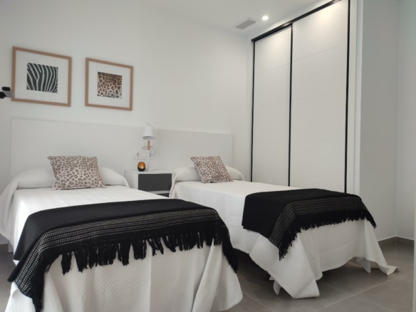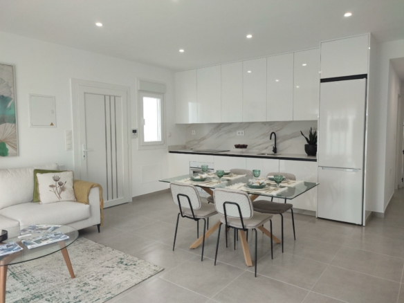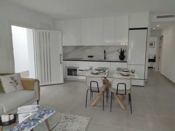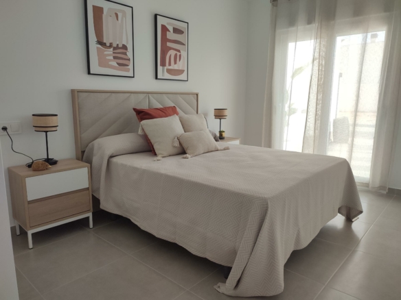 NIEUWBOUW GELIJKVLOERSE VILLA’S IN BALSICAS, MURCIA Nieuwbouw residentie heeft 6 gelijkvloerse vrijstaande villa’s, met terrassen, prive zwembad, parkeerplaats op het perceel en solarium met zomerkeuken, om alle uren van de zon te genieten elke dag van het jaar. Elke woning heeft 3 slaapkamers en 2 badkamers. De woning is ontworpen met een eigentijdse stijl en een open concept, met een volledig ingerichte keuken en woon-eetkamer. De woning zal voldoen aan de hoogste normen en zal worden uitgerust met: Keuken volledig ingericht en uitgerust met oven, geïntegreerde koelkast en vaatwasser, kookplaat en afzuigkap. Werkzone in kookeiland. Verlichting: binnen in de woning (eetkamer, keuken, gangen en badkamers), en ook in de buitenruimtes. Beklede kasten met laden. Volledig ingerichte badkamers met toilet, badmeubel, spiegel en douche met schermpanelen. Pre-installatie voor airconditioning via leidingen. Solarium met zomerkeuken, met pre-installatie voor apparatuur en schuifdeuren. Privé zwembad met buitendouche. Parkeerplaats op het perceel. Balsicas is een perfecte plek voor golfliefhebbers en ook voor iedereen die houdt van groene ruimtes als plaatsen van ontspanning, schoonheid en rust. De strategische ligging maakt het mogelijk voor de familie die besluit in dit complex te gaan wonen om alles binnen handbereik te hebben wat iemand zich maar kan wensen: een klimaat waar de zon bijna het hele jaar door schijnt, nabijgelegen stranden, de Mar Menor en zijn natuurlijke modder. met bewezen genezende krachten. Complex gelegen op 20 minuten van de luchthaven Murcia – Corvera en op 1 uur van de luchthaven van Alicante.
