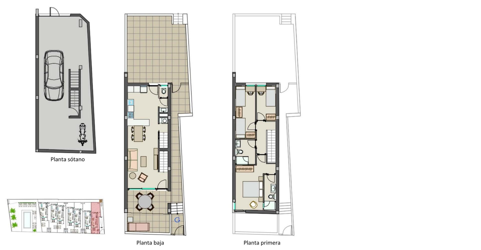 Nieuwbouw halfvrijstaande villa’s aan het strand in Moncofa met uitzicht op zee Toplocatie aan de kust van Castellón Ontdek een exclusief project van moderne halfvrijstaande villa’s, gelegen aan de eerste lijn van het strand in Moncofa, tussen de kustgebieden van Chilches en Moncofa. Deze bevoorrechte locatie aan de Costa del Azahar biedt directe toegang tot rustige zandstranden en een ontspannen mediterrane levensstijl. De omgeving is ideaal voor zowel permanente bewoning als vakantieverblijf, met lokale restaurants, strandbars, supermarkten en essentiële voorzieningen op korte afstand. Moncofa is goed bereikbaar via de weg, waardoor nabijgelegen steden zoals Castellón en Valencia gemakkelijk te bereiken zijn. Modern ontwerp en functionele indeling Dit kleinschalige project bestaat uit slechts 7 elegante woningen, ontworpen met strakke architectonische lijnen en een focus op comfort en dagelijks leven. Elke woning beschikt over 3 slaapkamers, 2 badkamers, waarvan één en-suite, en een extra gastentoilet. De woningen zijn verdeeld over drie verdiepingen, waardoor de ruimte en het natuurlijke licht optimaal worden benut. De begane grond biedt een open woon- en eetkamer met een volledig uitgeruste keuken, die naadloos aansluit op een privéterras met prachtig uitzicht op zee. Op de eerste verdieping bevinden zich de slaapkamers, waaronder een ruime master suite, terwijl sommige woningen op dit niveau ook een terras hebben. Het souterrain biedt een privégarage voor 1 of 2 auto’s en extra opslagruimte. Hoogwaardige afwerking en klaar om te betrekken Alle villa’s worden volledig gemeubileerd opgeleverd. De keukens zijn voorzien van apparatuur en de badkamers zijn compleet met meubilair, spiegels en doucheschermen. De woningen beschikken ook over volledig geïnstalleerde airconditioning en een efficiënt aerothermisch systeem voor warm water, wat het hele jaar door comfort en energie-efficiëntie garandeert. Exclusieve gemeenschap en levensstijl Het wooncomplex beschikt over een gemeenschappelijk zwembad en aangelegde tuinen, allemaal gelegen in een omgeving direct aan het strand. Dit zorgt voor een rustige en veilige sfeer, perfect om te genieten van het mediterrane klimaat en het buitenleven. Afstanden tot belangrijke bezienswaardigheden Strand van Moncofa: 0 km Strand van Chilches: 2 km Stadscentrum van Castellón: 30 km Stad Valencia: 50 km Luchthaven Valencia: 55 km Luchthaven Castellón: 45 km Dichtstbijzijnde golfbanen: ongeveer 20 km Uw huis aan de Middellandse Zee wacht op u Of u nu op zoek bent naar een permanente woning, een vakantiehuis of een slimme investering, deze halfvrijstaande villa’s aan het strand in Moncofa bieden een unieke kans om te genieten van de zee, comfort en modern design in een van de meest authentieke kustgebieden van Spanje. Neem vandaag nog contact met ons op voor meer informatie of om een bezichtiging te regelen. 365