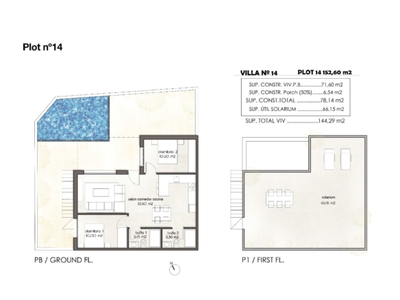 NIEUWBOUW HALFVRIJSTAANDE VILLA’S IN PILAR DE LA HORADADA Nieuwbouw halfvrijstaande villa’s gelegen in Pilar de la Horadada. Villa’s gebouwd op 1 verdieping en heeft een privé solarium, 2 slaapkamers, 2 badkamers, open keuken met de woonkamer, tuin met parkeerplaats. Mogelijkheid voor een privézwembad tegen meerprijs. De woningen liggen op een paar meter van alle voorzieningen en het centrum. Pilar de la Horadada is een typisch Spaans dorp in het meest zuidelijke deel van de Costa Blanca. De grote hoofdstraat heeft supermarkten, veel winkels, restaurants en bars en een aantal mooie pleinen. De prachtige stranden van Torre de la Horadada en Mil Palmeras met boulevard van fijn zand liggen op slechts 5 minuten afstand. In Pilar de la Horadada is er ook een goed ontwikkeld netwerk van fiets- en wandelpaden, en er is ook een groot aanbod van verschillende sportactiviteiten. De 18-holes golfbaan Lo Romero ligt op slechts een klein eindje rijden van de stad. De luchthavens van Corvera (Murcia) en Alicante liggen op respectievelijk 40 en 55 minuten rijden.