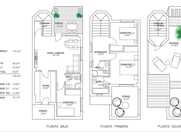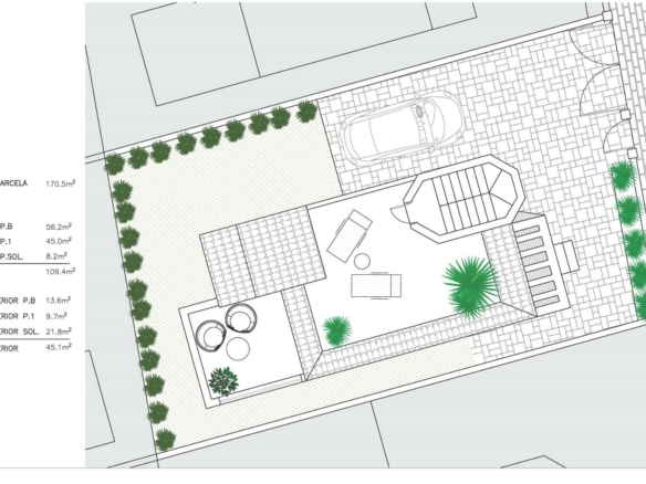 NIEUWBOUW VILLA IN SAN FULGENCIO Wooncomplex van vrijstaande en halfvrijstaande villa’s in San Fulgencio. De woningen bestaan uit 3 slaapkamers, 3 badkamers, woonkamer en aparte keuken, 2 terrassen op de begane grond, een terras op de 2e verdieping en een solarium op het dak. Elke woning heeft een eigen tuin en parkeerplaats. Er is een groot gemeenschappelijk zwembad. San Fulgencio is een comfortabele en handige wijk, bekend om zijn uitstekende infrastructuur. In de directe omgeving vind je cafés, restaurants, bars, apotheken, 3 grote supermarkten: Lidl, Aldi, Mercadona. Residentieel complex ligt op 10 minuten met de auto van het strand en ook op 10 minuten van het meest bekende in dit gebied vrijetijds- en familiecentrum ¨La Marina Resort¨ met een waterpark, camping, fitnessruimte, spa, restaurants, winkels en cafés. Residentieel complex heeft een unieke locatie – 30 minuten met de auto van de luchthaven, 40 minuten van de stad Alicante en 20 minuten van de stad Torrevieja.