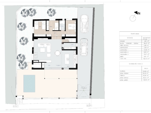 NIEUWBOUW VILLA’S IN MONFORTE DEL CID Nieuwbouw villa’s in Monforte del Cid, met de golfbaan op slechts 3 minuten van huis en direct naast de steden Alicante en Elche, waar je een breed scala aan cultuur, gastronomie, entertainment en natuurlijk de kust vindt. De gouden zandstranden van de Middellandse Zee liggen op een steenworp afstand van je nieuwe huis, een ruimte waar je op elk moment kunt genieten van dagen zon en zee. Villa’s gelegen op 3 minuten van het sportcentrum van de Alenda Golf golfbaan, waardoor het de perfecte locatie om de rust van een rustige urbanisatie te genieten, maar hebben alle diensten naast het huis (Slechts 12 minuten afstand van Alicante-Elche Airport). De urbanisatie is een gemeenschap die het beste van het moderne leven en de rust van de natuurlijke omgeving samenbrengt (Geen gemeenschapskosten). Ontdek de elegantie en het comfort van deze prachtige vrijstaande villa van 108m2 of 128m2 (mogelijkheid van twee woongroottes), ontworpen om je een uitzonderlijke levensstijl te bieden, allemaal op de begane grond. Gelegen in de prestigieuze urbanisatie, geeft deze woning je een unieke en kwalitatieve woonervaring. Op percelen vanaf 618m2, waardoor je voldoende ruimte hebt om zowel binnen als buiten te genieten. Geniet van de privacy die deze onafhankelijke villa biedt, waar je kunt ontspannen in je eigen tuin, een oase van rust kunt creëren of zelfs een zwembad kunt toevoegen om te genieten van de warme zomerdagen. Het huis is verdeeld in twee grote ruimtes: Daggedeelte: Waar we een ruime woon-eetkamer vinden met een open kantoorachtige keuken (keukenmeubels inbegrepen) die in verbinding staat met de grote moderne veranda via de twee grote ramen, die toegang geeft tot de buitentuin en waarom nee… tot het zwembad. Licht overspoelt elke hoek dankzij de grote ramen in de woonkamer, die uitkomen op de veranda, een moderne en functionele ruimte die je uitnodigt om volop van het buitenleven te genieten. Stel je voor dat je de middagen doorbrengt met familie en vrienden, omringd door een serene en natuurlijke omgeving. Als extra ruimte is er een wasruimte strategisch geplaatst in de verdeling van het huis waar het heel gemakkelijk toegankelijk is vanuit elk punt in het huis. Nacht- of rustruimte: In dit gebied vinden we 3 slaapkamers. De hoofdslaapkamer heeft een grote kleedkamer en en-suite badkamer. Daarnaast is er een tweede badkamer voor de rest van de slaapkamers en woningen. Hier vind je niet alleen een woongemeenschap, maar een plek waar natuur en elegantie samenkomen om je een ongeëvenaarde levensstijl te bieden. Of je nu je permanente woonplaats wilt vestigen, wilt genieten van een vakantiehuis of wilt investeren in je toekomst, deze villa is perfect voor jou. Privé urbanisatie vlakbij de belangrijkste steden van de provincie Alicante, op 15 minuten rijden van Elche en Alicante, evenals het vliegveld en de beste stranden. De urbanisatie ligt in een rustige omgeving vlakbij de Alenda Golfbaan in Monforte del Cid. 365