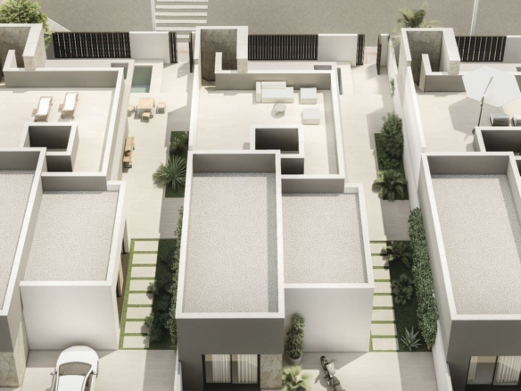 NIEUWBOUW VILLA’S IN SAN JUAN DE LOS TERREROS De eigentijdse en innovatieve architectuur van moderne villa’s komt samen in een wooncomplex in de stad San Juan de los Terreros in Pulpí, Almería, in Zuid-Spanje. Deze zorgvuldig ontworpen woningen en het wooncomplex combineren een uitzonderlijk niveau van design en kwaliteit met de hoogste normen op het gebied van duurzaamheid en welzijn. Woningen die zorgvuldig zijn ontworpen door het technische team van architecten, zodat licht, ruimte en oriëntatie elk huis en elk perceel een speciaal karakter geven. Unieke ruimtes die de deur openen naar een nieuwe levensstijl om van te genieten. De fundering en de structuur van de huizen zijn gemaakt van gewapend beton en hebben een garantie van tien jaar. Gevels ontworpen om de energiebehoefte van het huis te verminderen, gecombineerd met verschillende materialen om een esthetische consistentie te bereiken in termen van compositie en kleur zoals weergegeven in de infografieken. Ruime terrassen uitgerust met solide borstweringen om veiligheid te bieden op de terrasbalustrades, die amplitude en helderheid verlenen. De buitenomheiningen van het perceel zullen worden behandeld met dezelfde materialen die in het huis worden gebruikt, waardoor integratie in het wooncomplex wordt gegarandeerd. Geventileerde en geïsoleerde platte daken op platen, met verschillende afwerkingen afhankelijk van hun locatie en gebruik. De toegangsdeur van het huis wordt gepantserd. De deuren naar de hoofdslaapkamer, secundaire badkamers en toiletten worden voorzien van sloten. Het buitenschrijnwerk bestaat uit ramen en openslaande deuren van gelakt aluminium met rolgordijnen van aluminium lamellen, gemotoriseerd in de woonkamers. Video-intercomsysteem, dat individuele toegangscontrole garandeert voor elk van de huizen. De badkamers zijn uitgerust met een wastafel, toilet en douche, en de toiletten hebben een toilet en wastafel. De badkamers zijn voorzien van modern design sanitair, gemaakt van wit geglazuurd porselein, van het merk Roca en model Gap, met chromen of matzwarte eenhendel kranen om uit te kiezen. De douchewanden worden bevestigd met 8mm gehard glas met een lengte van 80cm. Elke pre-installatie is ontworpen voor een systeem van maximaal 10 panelen, die kunnen worden geïnstalleerd met een omvormer die wordt aangesloten op het elektriciteitsnet van de woning om het elektriciteitsverbruik te minimaliseren. Deze panelen worden geïntegreerd op het dak, in de installatiezone, verborgen van de buitenkant van de woning. De luchttoevoer naar de woningen wordt verzekerd door het inbouwen van een microventilatiesysteem in de ramen van woon- en slaapkamers. Onafhankelijke rookafvoer voor de afzuigkap in de keuken. Een pre-installatie van domotica in de woning met voorbereiding voor een toekomstige installatie van domotica voor het regelen van het klimaat en de verwarming in de kamer, jaloezieën en mogelijke inbraakalarmsystemen. Pre-installatie van videobewaking op de parkeerplaats en binnenzones van het perceel. Elke woning krijgt een volledig geïnstalleerde keuken afgewerkt in mat wit, volgens ontwerp, met een GOLA-systeem. De binnenkasten zullen wit zijn, met scharnierende deuren en laden met remmen onder de keramische kookplaat, klaar om zichtbare apparatuur te installeren. Apparaten zijn niet inbegrepen. Slaapkamers met ingebouwde kasten worden geleverd met schuifdeuren in mat wit. Deze woningen zullen energiezuinig zijn en weinig vervuiling veroorzaken. Ze zijn ontworpen met een focus op grotere efficiëntie voor lager energieverbruik, waardoor rationeel energiegebruik wordt gestimuleerd en tegelijkertijd zorg wordt gedragen voor het milieu, de kwaliteit en het klimaatcomfort in de woning. Glas met een lage emissiviteit voorkomt warmteverlies naar buiten, wat resulteert in economische besparingen door warmte in de woning vast te houden in de winter en te voorkomen dat warmte binnenkomt in de zomer. De HVAC- en warmwatersystemen zijn ontworpen met individuele systemen om het verbruik en de efficiëntie van elke woning te maximaliseren. San Juan de los Terreros is een kustgehucht dat deel uitmaakt van de gemeente Pulpí. Het staat bekend om zijn prachtige stranden, de laatste van Andalusië. Voor de kust van San Juan de los Terreros liggen twee kleine vulkanische eilandjes die het natuurmonument Isla de Terreros-Isla Negra vormen. Het meest karakteristieke monument van de stad is het kasteel van San Juan de los Terreros, gebouwd in 1764 op een voorgebergte vanwaar, op heldere dagen, een groot deel van de kustlijn van Almería en Murcia te zien is. Geïntegreerd in de rust en schoonheid van de eigen natuur, badend in stranden en baaien met kristalhelder water, geclassificeerd als een van de beste van Spanje. Omringd door beschermde natuurlandschappen die ons vervullen met rust en ons tegelijkertijd opladen met energie, dankzij een bruisend gastronomisch, sociaal en sportief aanbod. Exclusieve restaurants, sportclubs en natuurlijk uitstekende golfbanen met uitzicht op zee zoals Aguilón Golf. Een perfecte bestemming om het hele jaar door met het gezin van te genieten. 365