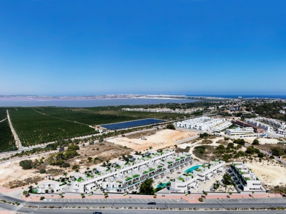 NIEUWBOUW WOONCOMPLEX IN LOS BALCONES, TORREVIEJA Nieuwbouw residentieel complex van halfvrijstaande villa’s en bungalows gelegen in Los Balcones met het uitzicht op het roze meer. Nieuwbouw gelijkvloerse bungalows heeft 2 slaapkamers, 3 badkamers, open keuken met ruime woonkamer, inbouwkasten, semi kelder, privé terras en ondergrondse parkeerplaats. Nieuwe exclusieve residentie met grote gemeenschappelijke ruimtes; tuinen, tuin-gym, speeltuin, 2 grote gemeenschappelijke zwembaden – een van hen voor volwassenen, en de andere voor kinderen. Los Balcones is een kleine stad gelegen nabij Torrevieja zuid. Torrevieja is een Spaanse stad in de provincie Alicante, aan de Costa Blanca. Het staat bekend om zijn typisch mediterrane klimaat en kustlijn. Het heeft promenades met resorts langs de zandstranden. Het kleine Museum van de Zee en het Zout herbergt tentoonstellingen over de visserij- en zoutgeschiedenis van de stad. In het binnenland heeft het natuurpark Lagunas de La Mata-Torrevieja paden en twee zoute lagunes, een roze en de andere groen. De luchthaven van Alicante ligt op 40 minuten afstand en die van Murcia op ongeveer 1 uur.