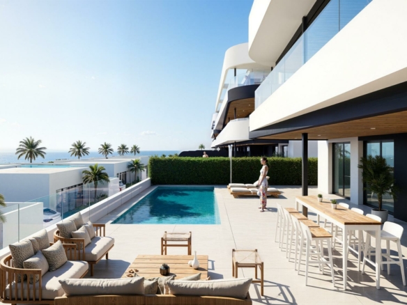 Nieuwbouwappartementen en -villa’s direct aan de golfbaan in La Serena Golf, Los Alcázares Exclusief woonproject direct aan de golfbaan van La Serena Golf Ontdek dit uitzonderlijke nieuwbouwproject direct aan de golfbaan van La Serena Golf in Los Alcázares, een van de meest gewilde kustplaatsen aan de Costa Cálida. Deze exclusieve gemeenschap biedt een eersteklas levensstijl, omgeven door de natuur, met weidse uitzichten en directe toegang tot een gerenommeerde 18-holes golfbaan die bekend staat om zijn vlakke terrein, schilderachtige meren en technische uitdagingen. Ideaal gelegen op slechts 1,7 km van de stranden van de Mar Menor en het stadscentrum, kunnen bewoners genieten van zowel rust als gemakkelijke toegang tot restaurants, winkels en alle essentiële voorzieningen. Los Alcazares staat bekend om zijn ontspannen sfeer, lange promenades en warme, ondiepe wateren, waardoor het perfect is om er het hele jaar door te wonen of voor vakantieverblijven. Moderne appartementen met terrassen en privé-zonneterrassen Het project omvat 36 moderne appartementen, verdeeld over vier blokken. Kopers kunnen kiezen tussen indelingen met twee of drie slaapkamers en twee badkamers, waaronder een en suite. Appartementen op de begane grond beschikken over ruime terrassen met de mogelijkheid om een privézwembad toe te voegen. Woningen op de tussenverdiepingen bieden royale buitenterrassen, terwijl penthouses zijn voorzien van privé-zonneterrassen die ideaal zijn om te zonnen en buiten te dineren. Alle appartementen beschikken over een ondergrondse parkeerplaats en een berging, bereikbaar via de lift. De gemeenschap biedt ook prachtig aangelegde mediterrane tuinen en een groot gemeenschappelijk zwembad waar bewoners van kunnen genieten. Stijlvolle gelijkvloerse villa’s met privézwembad Naast de appartementen biedt het project negen exclusieve gelijkvloerse villa’s. Deze woningen beschikken over drie slaapkamers, twee badkamers en een extra gastentoilet, allemaal ontworpen om een naadloze overgang tussen binnen- en buitenleven te bieden. Elke villa beschikt over een privézwembad, tuin, berging en privé-parkeerplaats. Een ruime open kelder biedt extra flexibele ruimte die kan worden aangepast aan individuele behoeften, zoals een fitnessruimte, entertainmentruimte of extra opslagruimte. Hoogwaardige afwerking en energiezuinig ontwerp Alle woningen zijn gebouwd met hoogwaardige materialen en moderne specificaties. Kenmerken zijn onder meer aluminium kozijnen met thermische onderbreking, volledig uitgeruste badkamers met wastafels en glazen doucheschermen, en voorinstallatie voor kanaalairconditioning en ingerichte keukens in de appartementen. De villa’s zijn voorzien van volledig geïnstalleerde airconditioningsystemen en volledig uitgeruste keukens met apparatuur. In de appartementengebouwen zijn liften aanwezig, wat zorgt voor comfort en toegankelijkheid. Toplocatie dicht bij golf, stranden en voorzieningen Dit project biedt uitstekende verbindingen met belangrijke bezienswaardigheden. De internationale luchthaven van Murcia ligt op 35 km afstand en de luchthaven van Alicante op 95 km. De jachthaven van Los Alcazares ligt op slechts 2 km afstand, het winkelcentrum Dos Mares op 15 km en Roda Golf op slechts 4 km van het project. Het centrum van Cartagena ligt op 25 km afstand. Ideale investering en kans op een mediterrane levensstijl Dit project aan de golfbaan biedt een unieke kans om te genieten van modern wonen in een bevoorrechte omgeving, dicht bij zowel de zee als de golfbaan. Neem vandaag nog contact met ons op voor meer informatie of om een bezichtiging te regelen en uw perfecte woning in Los Alcazares te vinden. 365