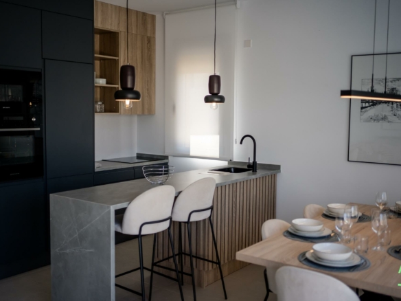 Nieuwbouwappartementen in Condado de Alhama Golf Resort Murcia Modern wonen in een prestigieus golfresort Ontdek deze nieuwbouwappartementen in het gerenommeerde Condado de Alhama Golf Resort in de regio Murcia. Dit exclusieve wooncomplex met villa’s en appartementen ligt in een beveiligd resort, omgeven door natuur, sportfaciliteiten en een kampioenschapsgolfbaan, en biedt een uitzonderlijke levensstijl in een rustige mediterrane omgeving. Condado de Alhama is een gerenommeerd golfresort met een winkelcentrum, supermarkten, bars, restaurants, sportfaciliteiten en aangelegde tuinen. Het is een ideale keuze voor zowel permanente bewoning als vakantiehuizen, waarbij comfort, veiligheid en vrije tijd worden gecombineerd. Moderne appartementen met terrassen en solariums De appartementen zijn verdeeld over laagbouwblokken van 8 eenheden, met woningen op de begane grond, eerste, tweede en derde verdieping. Elk blok heeft een lift die alle verdiepingen gemakkelijk bereikbaar maakt. De woningen op de begane grond hebben 3 slaapkamers en 2 complete badkamers, met de mogelijkheid om deze aan te passen naar 2 slaapkamers voor een grotere woonruimte, indien gewenst. De overige woningen hebben 2 slaapkamers en 2 badkamers. De appartementen op de bovenste verdieping hebben een eigen solarium, perfect om te zonnebaden en te genieten van het vrije uitzicht. Alle woningen zijn ontworpen volgens een modern open concept, waarbij een volledig uitgeruste keuken is geïntegreerd in de woon- en eetkamer. Ruime terrassen met een zomerkeuken breiden de leefruimte naar buiten uit, zodat bewoners het hele jaar door kunnen genieten van het warme klimaat. Hoogwaardige specificaties en gemeenschappelijke ruimtes Het project is gebouwd volgens hoge normen en omvat: Volledig ingerichte en uitgeruste keuken met ingebouwde koelkast en vaatwasser, inductiekookplaat, afzuigkap, oven en magnetron in kolom Voorbereiding voor airconditioning met luchtkanalen Aerothermisch systeem voor warm water Gepantserde toegangsdeur Volledig ingerichte badkamers met wastafelmeubel, hangend toilet en doucheschermen Binnen- en buitenverlichting Buitenparkeerplaats voor elk appartement Berging in geselecteerde units Bewoners profiteren van verschillende gemeenschappelijke zwembaden omgeven door groene zones, die een ontspannen en gezinsvriendelijke sfeer creëren. Toplocatie en afstanden Alhama Signature Golf, ontworpen door Jack Nicklaus, binnen het resort Stranden van Mazarron en Bolnuevo 20 km Internationale luchthaven van Murcia 20 km Stad Murcia 40 km Cartagena 35 km Mazarron biedt meer dan 35 km kustlijn, met verschillende Blauwe Vlag-stranden die bekend staan om hun kwaliteit en natuurlijke schoonheid. Uw huis in Condado de Alhama wacht op u Deze nieuwbouwappartementen bieden golf, zon en uitstekende voorzieningen in een van de meest complete resorts van Murcia. Neem vandaag nog contact met ons op voor meer informatie en om uw woning in Condado de Alhama Golf Resort te reserveren. 365