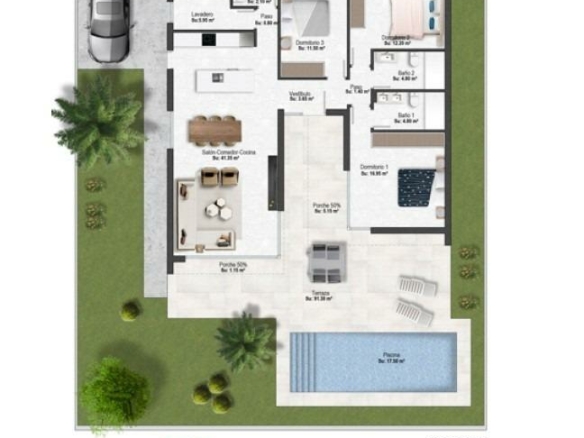 Nieuwbouwwilla’s in Altaona Golf Resort Murcia met privézwembad en uitzicht op de bergen Moderne villa’s in Altaona Golf Resort Murcia Ontdek een exclusief nieuwbouwproject met moderne villa’s in Altaona Golf Resort, een van de meest aantrekkelijke woonwijken in Murcia. Dit beveiligde golfresort, omgeven door natuurschoon en bergen, biedt een rustige omgeving en ligt toch op slechts een klein eindje rijden van de stad Murcia en de Middellandse Zeekust. Deze nieuwbouwwilla’s zijn ontworpen om comfort, privacy en een ontspannen mediterrane levensstijl te bieden. Het project biedt een selectie van gelijkvloerse villa’s met een optioneel solarium of villa’s met twee verdiepingen, allemaal voorzien van drie slaapkamers en twee badkamers, inclusief een hoofdslaapkamer met en-suite badkamer. Ruim ontwerp met privétuinen en zwembad Elke villa is gebouwd op een privéterrein vanaf 300 m², met voldoende buitenruimte om het hele jaar door van de zon te genieten. De woningen beschikken over een privézwembad, aangelegde tuinen en parkeergelegenheid op het terrein. De indeling is ontworpen om het natuurlijke licht te maximaliseren en een naadloze verbinding te creëren tussen binnen- en buitenleven. De open woon- en eetruimtes sluiten direct aan op het terras en het zwembad, waardoor de perfecte omgeving ontstaat om te ontspannen of familie en vrienden te ontvangen. Hoogwaardige afwerking en moderne voorzieningen Deze villa’s zijn gebouwd met hoogwaardige materialen en moderne bouwtechnieken om comfort en energie-efficiëntie te garanderen. Tot de voorzieningen behoren een versterkte veiligheidsdeur, een volledig ingerichte keuken met apparatuur, vloerverwarming in de badkamers en een LED-verlichtingspakket voor het interieur. Bijkomende specificaties zijn onder meer de voorbereiding voor airconditioning via luchtkanalen en warmwatervoorziening via een energiezuinig aerothermisch systeem, wat zowel duurzaamheid als kostenbesparingen oplevert. Toplocatie dicht bij golf, stad en kust Altaona Golf Resort staat bekend om zijn 18-holes golfbaan, rustige omgeving en uitstekende beveiliging, waardoor het ideaal is voor zowel permanente bewoning als vakantiehuizen. Het resort biedt een unieke combinatie van natuur, sport en de nabijheid van belangrijke bestemmingen. Het centrum van Murcia ligt op slechts 15 km afstand en biedt een breed scala aan winkels, restaurants, culturele bezienswaardigheden en voorzieningen. De stranden van de Mar Menor en de Middellandse Zeekust liggen op ongeveer 20 km afstand, perfect om te genieten van zonnige dagen aan zee. Andere belangrijke afstanden zijn onder meer de luchthaven Murcia-Corvera op 15 km, de stad Cartagena op 35 km en verschillende golfbanen op korte rijafstand, waardoor dit een ideale locatie is voor golfliefhebbers en internationale kopers. Ideale investering en kans op een mediterrane levensstijl Deze nieuwbouwwilla’s in Altaona Golf Resort bieden een uitstekende kans om te genieten van een hoogwaardige levensstijl in een natuurlijke en veilige omgeving, met gemakkelijke toegang tot zowel de stad als de kust. Neem vandaag nog contact met ons op voor meer informatie of om een bezichtiging te regelen en ontdek uw nieuwe thuis in Murcia. 365