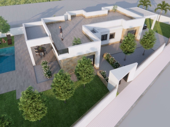 Nieuwbouwwoning met privézwembad in Vistabella, Jacarilla Exclusieve nieuwbouwwoning in een natuurlijke omgeving met golfbaan Deze nieuwbouwwoning onder zelfpromotie bevindt zich in de rustige omgeving van Vistabella, in de gemeente Jacarilla. Gelegen in een natuurlijke omgeving tussen de golfbaan van Vistabella en het stuwmeer van La Pedrera, biedt deze woning privacy, vrij uitzicht en een ontspannen mediterrane levensstijl. De omgeving is ideaal voor mensen die op zoek zijn naar rust, maar toch dicht bij de kust, golfbanen en dagelijkse voorzieningen willen wonen. Vistabella is een bekende woonwijk die populair is bij internationale kopers dankzij de golfbaan, lokale restaurants en de nabijheid van Orihuela Costa en Torrevieja. Jacarilla heeft zijn traditionele Spaanse charme behouden en biedt het hele jaar door lokale winkels, voorzieningen en een vriendelijke sfeer. Moderne gelijkvloerse indeling met ruime buitenruimtes De villa is verdeeld over één verdieping en is ontworpen om comfort, functionaliteit en natuurlijk licht te combineren. Het biedt 3 slaapkamers en 2 badkamers, waaronder een hoofdslaapkamer met eigen badkamer. De open woon- en eetkamer sluit naadloos aan op de moderne keuken, waardoor een lichte en uitnodigende leefruimte ontstaat. Een overdekt terras van 22 m² biedt directe toegang tot de privétuin, waar een privézwembad en aangelegde tuinen u uitnodigen om te genieten van het buitenleven. Het royale perceel van 750 m² omvat ook een parkeerplaats voor twee voertuigen. Privé-solarium met vrij uitzicht Een van de hoogtepunten van deze villa is het indrukwekkende privé-solarium van 120 m², dat toegankelijk is via een buitentrap. Van hieruit kunt u genieten van een panoramisch uitzicht op het omliggende landschap, perfect om het hele jaar door te zonnebaden, te entertainen of te ontspannen. Kwaliteitsspecificaties en energiezuinige voorzieningen De villa is gebouwd met hoogwaardige materialen en moderne specificaties om comfort en efficiëntie te garanderen. Tot de voorzieningen behoren een versterkte veiligheidsdeur, een aerothermisch systeem voor warm water, elektrische jaloezieën in de woonkamer en slaapkamers, en een voorinstallatie voor airconditioning. Deze elementen vormen een ideale basis voor een comfortabel en energiezuinig huis. Uitstekende locatie dicht bij golf, natuur en de kust Vistabella Golf ligt op ongeveer 2 km afstand, terwijl het stuwmeer La Pedrera op slechts 1,5 km van het pand ligt, ideaal voor natuurliefhebbers en buitenactiviteiten. De stranden van Orihuela Costa liggen op ongeveer 15 km afstand. De internationale luchthaven van Alicante ligt op ongeveer 55 km afstand en biedt gemakkelijke verbindingen naar belangrijke Europese bestemmingen. Verschillende andere golfbanen en winkelgebieden liggen op 10 tot 15 km afstand. Een unieke kans aan de Costa Blanca Deze nieuwbouwwoning in Vistabella is perfect als permanente woning, vakantiehuis of investeringsmogelijkheid op een gewilde locatie. Neem vandaag nog contact met ons op voor meer informatie en verzeker u van uw nieuwe woning in het hart van de Costa Blanca. 365