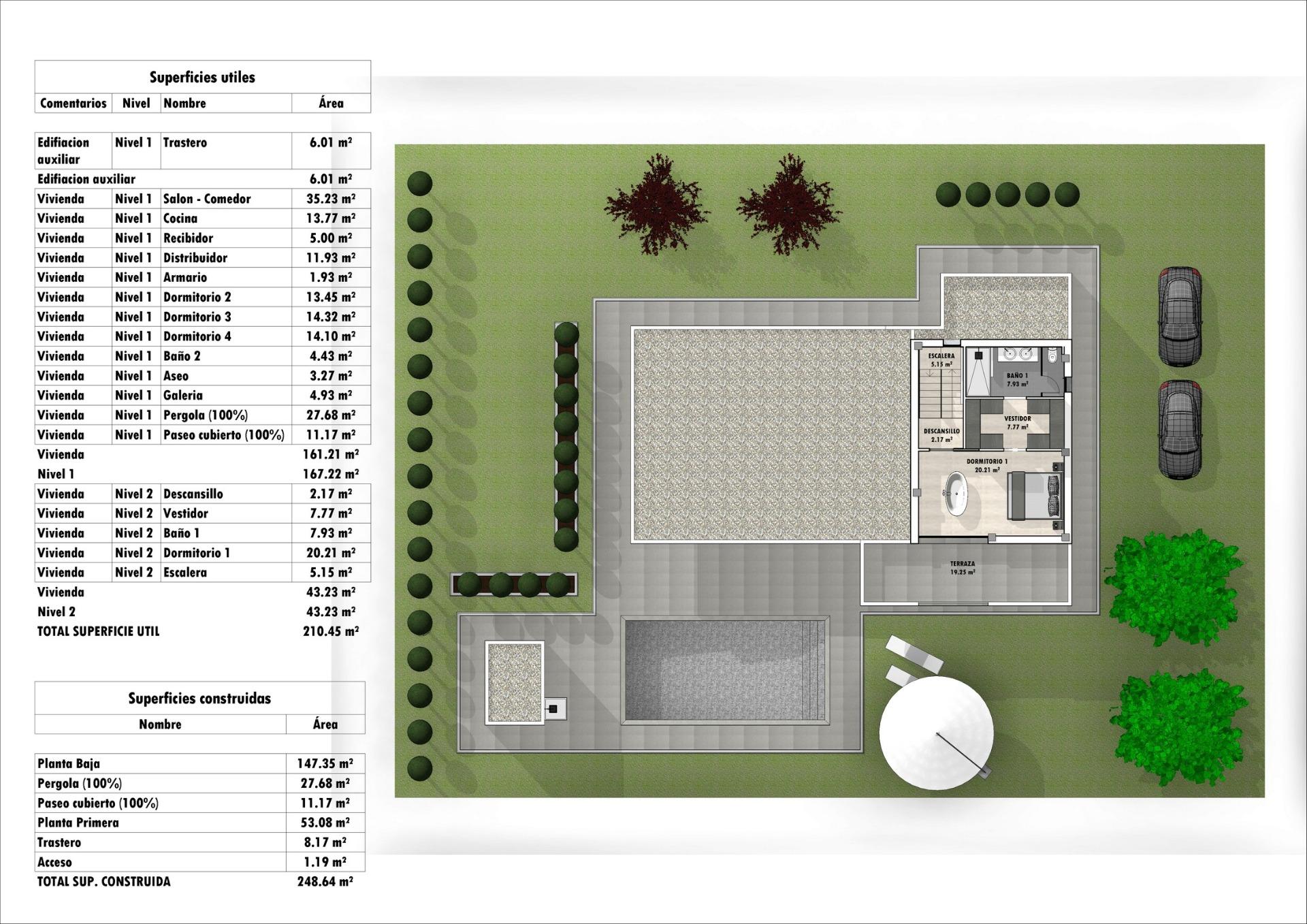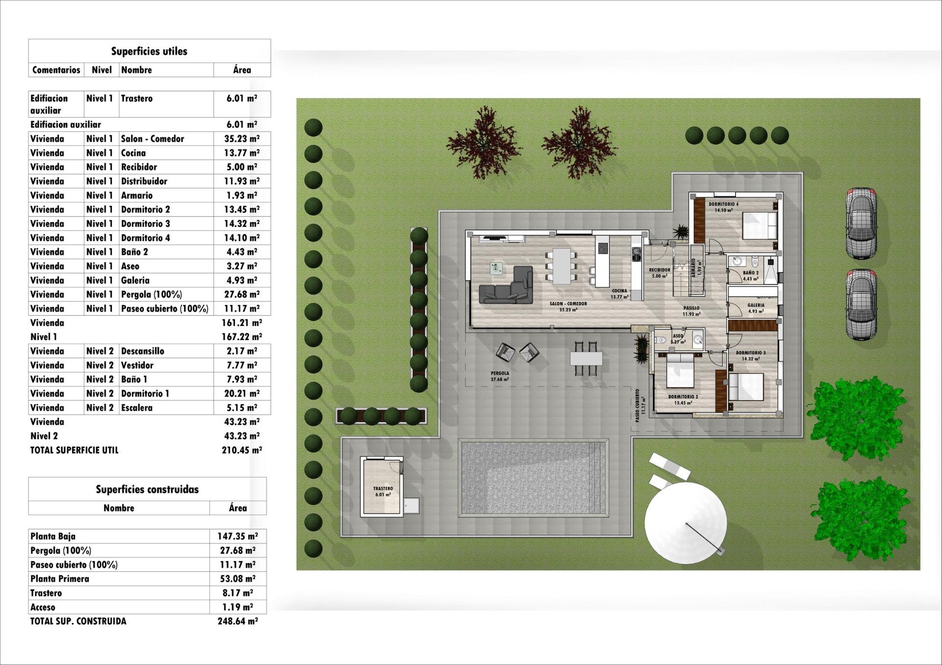 Nieuwbouwwoningen gelegen in de gemeente Aspe. Nieuwbouwwoningen met verschillende modellen naar keuze met 2, 3 of 4 slaapkamers, met één of twee verdiepingen en gebouwd met platen of met een structuur: afhankelijk van het model en het gekozen perceel wordt de exacte prijs berekend. Alle villa’s worden gebouwd op rustieke percelen van meer dan 10.000 m2, waarvan ongeveer 2.500 m2 omheind zal worden. De villa’s beschikken over een open keuken met woonkamer, inbouwkasten, privézwembad, veranda, berging en buitenparkeerplaats. Er zijn verschillende percelen beschikbaar. Voor de prijsberekening is uitgegaan van een perceel met een prijs van 77.500 euro (als u een ander perceel kiest, betaalt u het verschil). Het project wordt in eigen beheer uitgevoerd en wordt binnen ongeveer 12 maanden na verlening van de vergunning opgeleverd. Als u op zoek bent naar een rustige omgeving, dicht bij typisch Spaanse dorpjes, ver weg van de toeristische drukte, omgeven door bergen, met een zeer groot perceel en op ongeveer 30 minuten van de zee, dan is dit uw huis. Aspe is een typisch Spaans dorp met alle voorzieningen voor het dagelijks leven, omgeven door bergen en met verschillende natuurgebieden in de omgeving waar u kunt wandelen of mountainbiken. Gelegen op 25 km van het strand, op 9 km van Elche en op ongeveer 20 km van de luchthaven van Alicante.