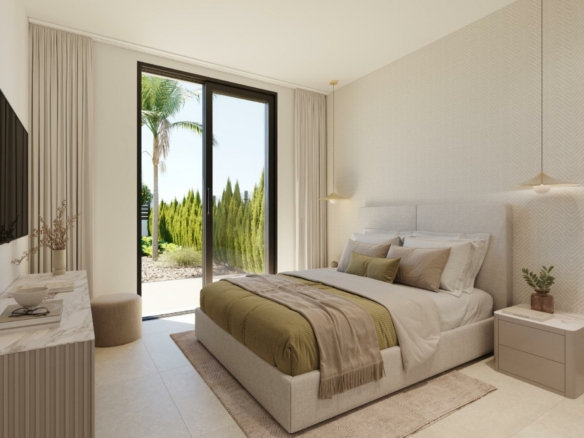 Nieuwbouwwoningen in Hacienda del Álamo Golf Resort, Murcia Moderne woningen in een natuurlijke en exclusieve omgeving Ontdek deze fantastische nieuwbouwwoningen in het prestigieuze Hacienda del Álamo Golf Resort, een gated community in de regio Murcia die rust, veiligheid en een compleet aanbod aan diensten combineert. Omgeven door natuur en met een bevoorrecht klimaat is dit complex ideaal voor wie op zoek is naar een ontspannen levensstijl zonder in te boeten aan comfort. Villas met 2 of 3 slaapkamers op één verdieping met privé-solarium De woonwijk bestaat uit 17 villa’s op percelen vanaf 300 m2. U kunt kiezen uit woningen met 2 of 3 slaapkamers en 2 complete badkamers op één verdieping, naast een terras met privézwembad van 6×2,4 en een privé-solarium op het dak. Hoogwaardige afwerking en gegarandeerd comfort De woningen zijn ontworpen met hoogwaardige materialen en zijn bedoeld om energie-efficiëntie en welzijn te bieden: Buitenkozijnen met thermische onderbreking Warm water via een aerothermisch systeem Voorbereiding voor airconditioning via leidingen Privézwembad Onafhankelijke irrigatiewaterinstallatie met opslagtank en individuele drukgroep. Gemotoriseerde toegangspoort voor voertuigen. Gemotoriseerde rolluiken in slaapkamers Gepantserde voordeur Een resort met volledige service en golfbaan Hacienda del Álamo is een van de meest complete complexen aan de Costa Cálida. Het beschikt over: Professionele 18-holes golfbaan Hotel met spa Supermarkt Restaurants en bars Sportvelden en groene zones 24-uursbeveiliging De urbanisatie bootst de sfeer van een traditioneel mediterraan dorp na, met rustige straatjes en een verzorgd ontwerp. Strategische ligging dicht bij alles Internationale luchthaven van Murcia (Corvera): 20 km Extra golfbanen: minder dan 10 km Cartagena: 35 km Stranden van Mar Menor: 30 km Winkelcentrum Espacio Mediterráneo: 28 km Haven van Mazarrón: 40 km Leef in stijl aan de Costa Cálida Deze villa’s bieden een uitstekende kans om te wonen of te investeren in een van de meest veelbelovende gebieden van Murcia. Neem nu contact met ons op en ontdek uw volgende thuis in Hacienda del Álamo Golf Resort.