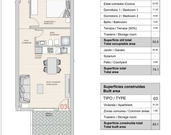 Nieuwbouwwoningen in La Canalosa met gemeenschappelijk zwembad Landelijke rust met moderne voorzieningen Welkom in deze exclusieve woonwijk in La Canalosa, een charmant gehucht van Hondón de las Nieves, Alicante. Deze nieuwbouwproject biedt een rustige levensstijl midden in de natuur, met alle voorzieningen die u nodig heeft om van het dagelijks leven te genieten. Met in totaal 8 woningen met 2 slaapkamers en 1 badkamer is dit de ideale keuze voor wie op zoek is naar rust, comfort en verbondenheid met de natuur. Woningtypes voor alle smaken De begane grondwoningen hebben terrassen aan de voorzijde en achtertuinen, en drie ervan bieden ruimte om de auto op het eigen perceel te parkeren. De woningen op de bovenverdieping hebben een privéterras met berging, ideaal om het hele jaar door te genieten van de zon en het uitstekende mediterrane klimaat dat kenmerkend is voor deze streek. Kwaliteit en uitrusting Elke woning is ontworpen met een praktische en moderne inrichting: Voorbereiding voor airconditioning Beveiligde voordeur Badkamermeubel met spiegel Hoogwaardig buitenschrijnwerk De residentie beschikt ook over een gemeenschappelijk zwembad omgeven door tuinen, perfect om te ontspannen en te genieten met het gezin. Natuurlijke omgeving en gezonde levensstijl La Canalosa is de ideale bestemming voor mensen die een eenvoudige, gezonde levensstijl in de natuur waarderen. Het landelijke landschap nodigt uit tot wandelen, fietsen of gewoon genieten van de stilte en de schoonheid van de omgeving. Op slechts enkele minuten afstand biedt Hondón de las Nieves extra voorzieningen, lokale geschiedenis en een gerenommeerde wijnbouwtraditie. Afstanden tot bezienswaardigheden Lokale school: 0,1 km Sportvelden: 0,3 km Medisch centrum: 3 km Centrale markt: 4 km Golfbaan: 16 km Winkelcentra: 17 km Elche: 26 km Alicante: 26 km Luchthaven Alicante-Elche: 33 km Stranden van de Costa Blanca: 38 km Investeer in welzijn en natuur Deze projectontwikkeling biedt een uitstekende kans om een moderne woning te kopen in een unieke, landelijke omgeving met goede verbindingen. Perfect als hoofdverblijf, vakantiehuis of investering met groot potentieel voor waardestijging. Neem vandaag nog contact met ons op om een bezichtiging te plannen en uw nieuwe thuis in La Canalosa te ontdekken.