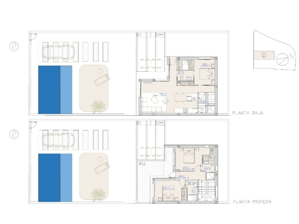 Nieuwbouwwoningen in San Pedro del Pinatar met privézwembad Modern design en toplocatie Dit exclusieve nieuwbouwproject in San Pedro del Pinatar biedt de perfecte combinatie van een eigentijdse stijl, comfort en een onovertroffen locatie aan de Costa Cálida. De woningen zijn ontworpen met twee verdiepingen en gebouwd op kavels vanaf 250 m². Elke villa heeft een moderne indeling met een lichte open woonkamer en keuken die naadloos aansluit op het privézwembad. Parkeren is inbegrepen op het perceel voor maximaal gemak. De villa’s zijn gelegen in een centrale woonwijk, op slechts 5 minuten lopen van het stadscentrum, 900 meter van de zee en dicht bij alle essentiële voorzieningen zoals winkels, supermarkten, scholen en restaurants. Ruime interieurs en functionele indeling Deze villa’s zijn verdeeld over twee verdiepingen: Begane grond: open woon- en eetkamer met geïntegreerde keuken, een slaapkamer, een badkamer en een terras. Eerste verdieping: twee slaapkamers met eigen badkamer en toegang tot een open terras van 25 m2. Elk detail is zorgvuldig ontworpen om het comfort en de stijl te maximaliseren, waardoor deze villa’s ideaal zijn als permanente woning, vakantiehuis of investeringsobject. Hoogwaardige afwerking en voorzieningen Elke woning is voorzien van hoogwaardige afwerkingen en moderne installaties om energie-efficiëntie en een luxe woonervaring te garanderen: Gepantserde voordeur en elektrische rolluiken in de woonkamer Voorbereiding voor airconditioning Aerothermisch warmwatersysteem Volledig ingerichte keuken met apparatuur LED-verlichtingspakket voor binnen en buiten Levensstijl in San Pedro del Pinatar San Pedro del Pinatar is een gewilde kustplaats tussen de Middellandse Zee en de Mar Menor, beroemd om zijn natuurlijke modderbaden van Lo Pagán, rustige stranden en watersportactiviteiten. De jachthaven en zeilclubs trekken watersportliefhebbers aan, terwijl het milde klimaat het hele jaar door buitenactiviteiten mogelijk maakt. De stad biedt ook sportfaciliteiten, een overdekt zwembad en een levendig sociaal en cultureel programma. Afstanden tot belangrijke bezienswaardigheden: Winkelcentrum Dos Mares: 5 km Cartagena: 25 minuten Internationale luchthaven van Murcia: 30 minuten Luchthaven van Alicante: 75 km Golfbanen: binnen een straal van 10-20 km Verzeker uzelf van uw nieuwe woning in Costa Cálida Met hun toplocatie, moderne ontwerp en uitstekende verbindingen zijn deze villa’s in San Pedro del Pinatar een unieke kans. Neem vandaag nog contact met ons op om een bezichtiging te regelen en te beginnen met genieten van de mediterrane levensstijl die u verdient.