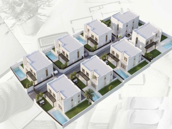Nieuwbouwwoningen met privézwembad in San Juan de Alicante Exclusief wonen in San Juan Ontdek dit exclusieve project van 8 vrijstaande villa’s in San Juan de Alicante, elk met een eigen tuin en zwembad. Deze moderne woningen zijn ontworpen om het buitenleven in een rustige omgeving te verbeteren en bieden privacy en comfort op slechts enkele minuten van de bruisende stad Alicante en de gouden stranden van de Costa Blanca. Ruime en functionele indeling Elke villa heeft een oppervlakte van 295 m², verdeeld over twee verdiepingen, zorgvuldig ontworpen met het oog op comfort en functionaliteit: Begane grond: lichte woon-eetkamer met open keuken, gastentoilet, wasruimte/bijkeuken en directe toegang tot het terras, de tuin en het zwembad. Eerste verdieping: hoofdslaapkamer met terras, inloopkast en en-suite badkamer, plus twee extra tweepersoonsslaapkamers en een complete badkamer. Modern design en hoogwaardige afwerking Deze villa’s zijn gebouwd in een eigentijdse architecturale stijl en combineren elegantie met energie-efficiëntie. Grote ramen zorgen voor veel natuurlijk licht, terwijl de oriëntatie de blootstelling aan de zon gedurende de dag maximaliseert. Het interieur is afgewerkt met hoogwaardige materialen, waaronder: Designkeukens die zijn uitgerust voor functionaliteit en stijl Volledig ingerichte badkamers met doucheschermen Uitstekende isolatie en energie-efficiëntieklasse B voor zowel verbruik als CO2-uitstoot Toplocatie in San Juan de Alicante Het project is gelegen in Lloixa, dat wordt beschouwd als de beste woonwijk van San Juan de Alicante. Deze wijk biedt brede voetpaden, fietsroutes en gemakkelijke toegang tot essentiële voorzieningen. Afstanden tot belangrijke bezienswaardigheden: Playa de San Juan: 4 km Cabo de las Huertas: 6 km Strand La Albufereta: 7 km Centrum van Alicante: 8 km Internationale luchthaven van Alicante: 20 km Bonalba Golf Resort: 10 km Jachthaven van Alicante: 9 km Scholen, winkels, restaurants en gezondheidszorg zijn allemaal op loopafstand, waardoor deze locatie zowel praktisch als gezinsvriendelijk is. Uw ideale mediterrane woning Deze villa’s bieden de perfecte combinatie van modern design, energie-efficiëntie en een toplocatie, waardoor ze een uitstekende keuze zijn als permanente woning of vakantiehuis. Mis deze kans niet om in een van de meest gewilde wijken van Alicante te wonen. Neem vandaag nog contact met ons op om een bezichtiging in te plannen en deze droomvilla van u te maken.
