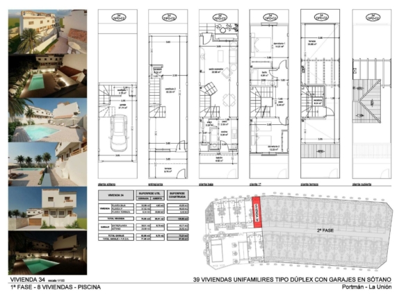 Nieuwbouwwoningen met uitzicht op zee in Portman Murcia Exclusief wonen in Portman Bay Dit exclusieve project van 39 nieuwbouwwoningen ligt op een verhoogde locatie in Portman en biedt een panoramisch uitzicht over de Middellandse Zee en de prachtige Portman Bay. Deze woningen liggen op slechts 1,6 km van het strand en zijn ontworpen om de authentieke mediterrane levensstijl te omarmen in een rustige en bevoorrechte natuurlijke omgeving. Portman is een charmant kustplaatsje, omgeven door beschermende bergen en open naar de zee, met een zuidelijke ligging en milde temperaturen het hele jaar door. Het gebied is ideaal voor liefhebbers van het buitenleven, met wandel- en mountainbikeroutes, kristalhelder water om in te zwemmen en een ontspannen sfeer die perfect is om even helemaal tot rust te komen. Tegelijkertijd ligt het op slechts 15 minuten rijden van Cartagena, waar u winkelcentra, ziekenhuizen, culturele bezienswaardigheden en een levendige jachthaven vindt. Moderne herenhuizen met 2 en 3 slaapkamers en een eigen solarium Het project biedt herenhuizen met 2 en 3 slaapkamers, 1 complete badkamer en 1 gastentoilet, verdeeld over 3 of 4 verdiepingen plus een eigen solarium op het dak. Elke woning is zorgvuldig ontworpen om comfort, functionaliteit en natuurlijk licht te maximaliseren. Vanaf uw privéterras kunt u genieten van een 360 graden uitzicht op de zee en het omliggende landschap, waardoor een unieke ruimte ontstaat om te ontspannen, te zonnen of gasten te ontvangen. Hoogwaardige specificaties en praktische ruimtes Deze nieuwbouwwoningen worden opgeleverd met hoogwaardige materialen en moderne afwerkingen, waaronder: Moderne keukens uitgerust met apparatuur van topmerken Gepantserde toegangsdeur Badkamers met wastafels, spiegels, doucheschermen en elektrische handdoekverwarmers Aerothermisch systeem voor warm water Voorbereiding voor split-airconditioningunits Ruime privé-ondergrondse garage en opslagruimte Grote opslagruimtes bieden ideale ruimte voor fietsen, strandspullen of duikuitrusting, waardoor deze woningen perfect zijn voor mensen die genieten van de vele buitenactiviteiten die in de regio beschikbaar zijn. Gemeenschappelijke ruimtes voor ontspanning en sociaal leven Het wooncomplex beschikt over aangelegde tuinen en een gemeenschappelijk zwembad, waardoor bewoners kunnen genieten van een comfortabele en veilige omgeving om te ontspannen en tijd door te brengen met familie en vrienden. Afstanden tot belangrijke bezienswaardigheden Strand 1,6 km Cartagena 15 km La Manga Club Golf 12 km Haven van Cartagena 15 km Internationale luchthaven van Murcia 35 km Luchthaven van Alicante 120 km Ontdek uw mediterrane levensstijl in Portman Of u nu op zoek bent naar een permanente woning of een vakantiehuis aan zee, deze herenhuizen in Portman bieden uitzicht, comfort en een uitzonderlijke natuurlijke omgeving. Neem vandaag nog contact met ons op voor meer informatie of om een bezoek te regelen aan dit uitstekende nieuwe project. 365