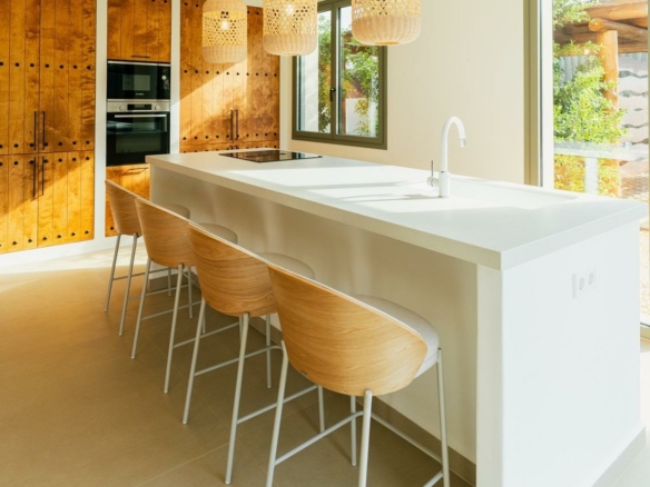 Sleutelklare villa in mediterrane stijl in Javea met privézwembad en groot perceel Exclusieve nieuwbouwwoning in Valle del Sol Ontdek deze prachtige, sleutelklare villa in de rustige urbanisatie Valle del Sol, op slechts een klein eindje rijden van het centrum van Javea en op slechts 2,5 km van het populaire strand El Arenal. Het pand is ontworpen met een mix van mediterrane en Ibiza-invloeden en heeft zachte, gebogen lijnen, zichtbare houten balken en gewelfde plafonds die een warme en authentieke sfeer creëren. Grote ramen met luiken vullen het huis met natuurlijk licht, wat het gevoel van rust en comfort versterkt. Elegante indeling op één niveau De villa is gebouwd op een royaal perceel van 1000 m2 en is voor maximaal comfort verdeeld over één verdieping. Het omvat een lichte woon-eetkamer, een volledig uitgeruste keuken, een bijkeuken, drie ruime slaapkamers met inbouwkasten, drie en suite badkamers en een gastentoilet. Elk detail is zorgvuldig gekozen, met handgemaakte natuurstenen elementen en houten balken die de traditionele charme van de Costa Blanca Noord weerspiegelen. Buitenruimtes ontworpen om te ontspannen De buitenkant van de villa biedt een ideale omgeving om te genieten van de mediterrane levensstijl. Een prachtig aangelegde tuin, een turquoise zwembad en zonovergoten terrassen bieden de perfecte ruimte om het hele jaar door te dineren, te entertainen en te ontspannen. De woning beschikt ook over een pergola met ruimte voor twee auto’s, zonnepanelen, airconditioning met twee zones, een video-intercom, een alarmsysteem en domotica voor de verlichting. Toplocatie in Javea Javea is een van de meest gewilde plaatsen aan de Costa Blanca Noord, bekend om zijn prachtige stranden, baaien, jachthavens, golfbanen, natuurparken en uitstekende gastronomie. Het milde klimaat en de hoge levenskwaliteit trekken bewoners en investeerders uit heel Europa aan. Belangrijkste afstanden vanaf de villa: El Arenal-strand 2,5 km Haven en jachthaven van Javea 6 km Golfclub van Javea 4 km Luchthaven Alicante 100 km Luchthaven Valencia 125 km Uw mediterrane thuis wacht op u Deze villa is de ideale keuze voor wie op zoek is naar een permanente woning, een luxe vakantiehuis of een hoogwaardige investering. Neem vandaag nog contact met ons op om een bezichtiging te plannen en deze uitzonderlijke woning in Javea te ontdekken.
